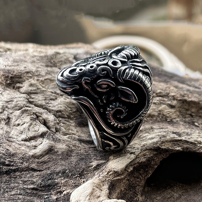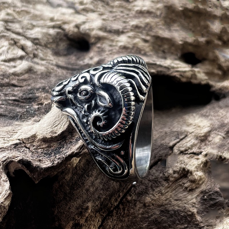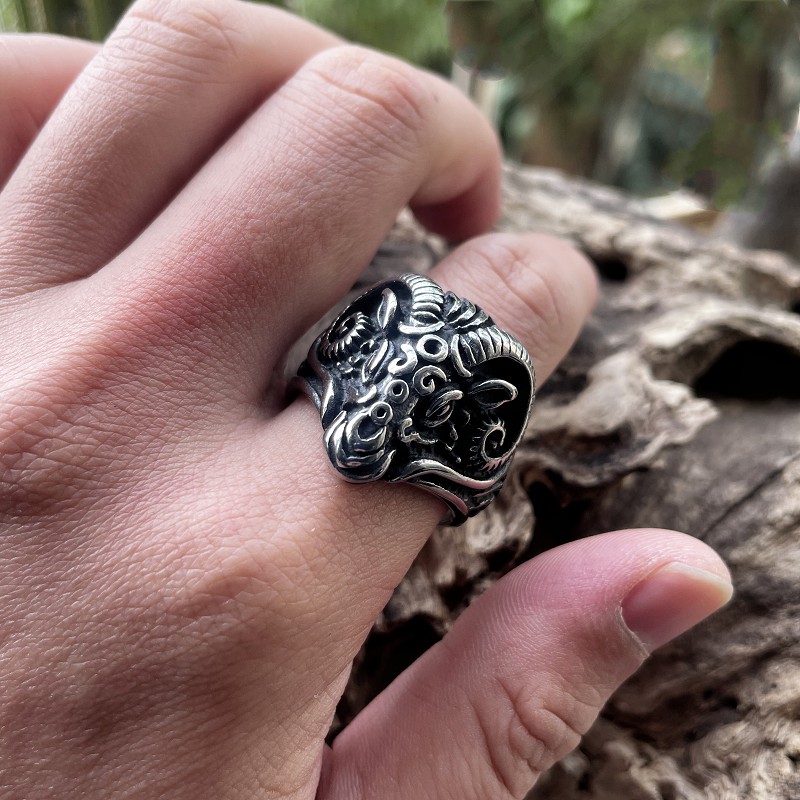 ROCK PUNK生肖羊钛钢戒指士高级感不掉色嘻哈朋克扳指食指饰品