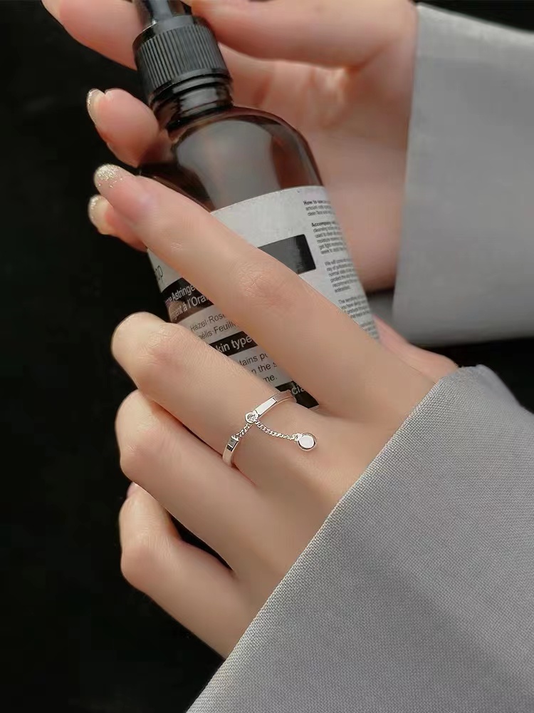 925纯银光面链条戒指女随形素圈时尚个性ins可调节指环