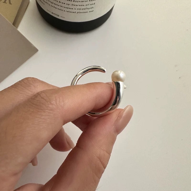 白珍珠玛瑙戒指纯银开口可调节极简轻奢个性手工小众设计高级饰品