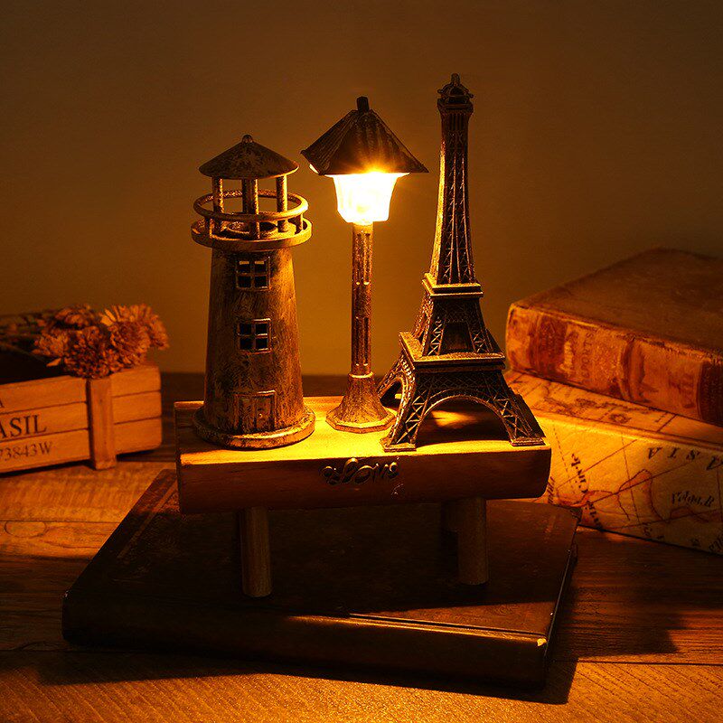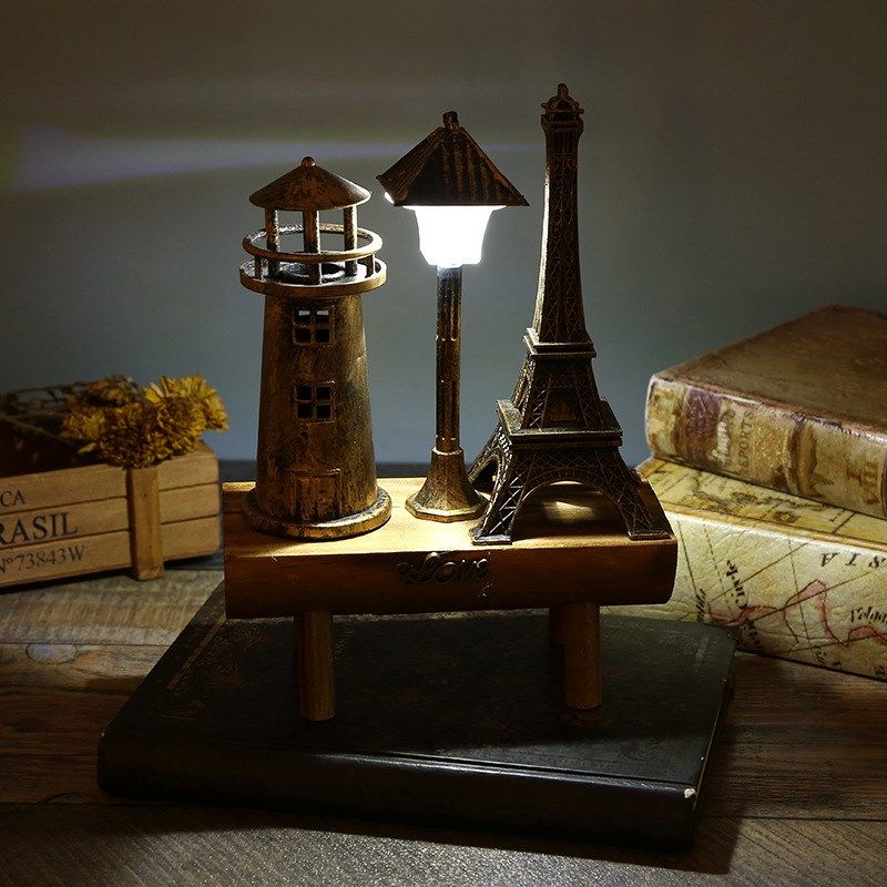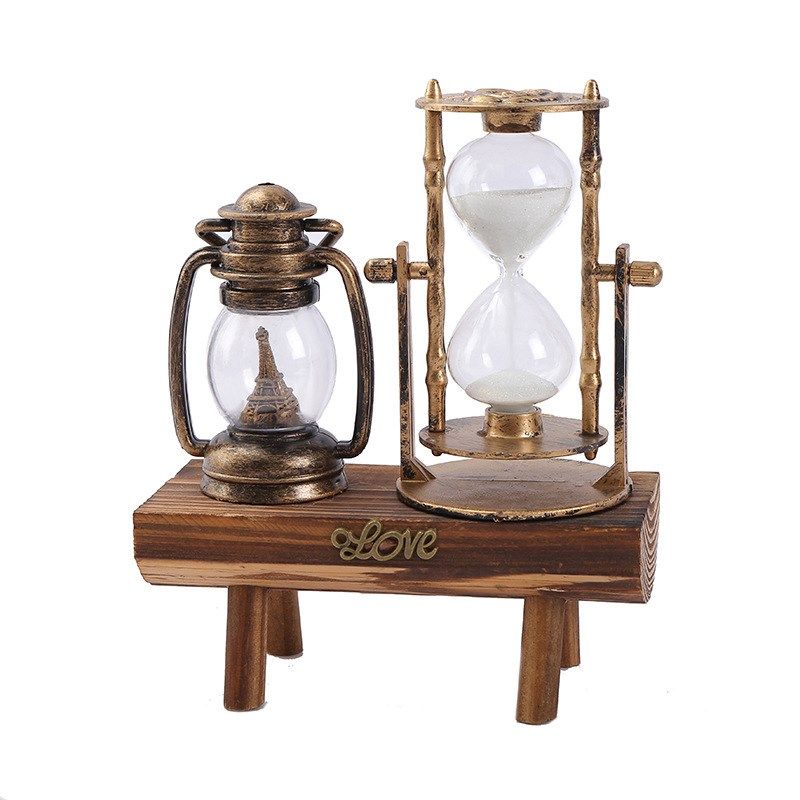 复古摆件灯塔沙漏摆件欧式发光路灯装饰木质底座风车沙漏摆饰