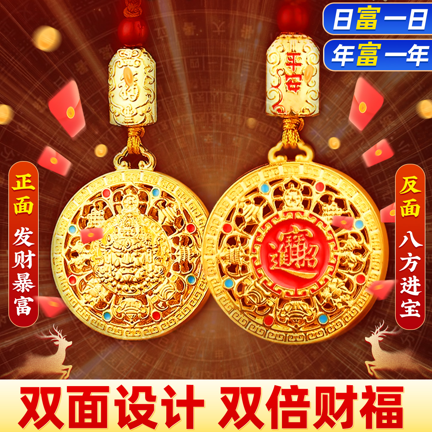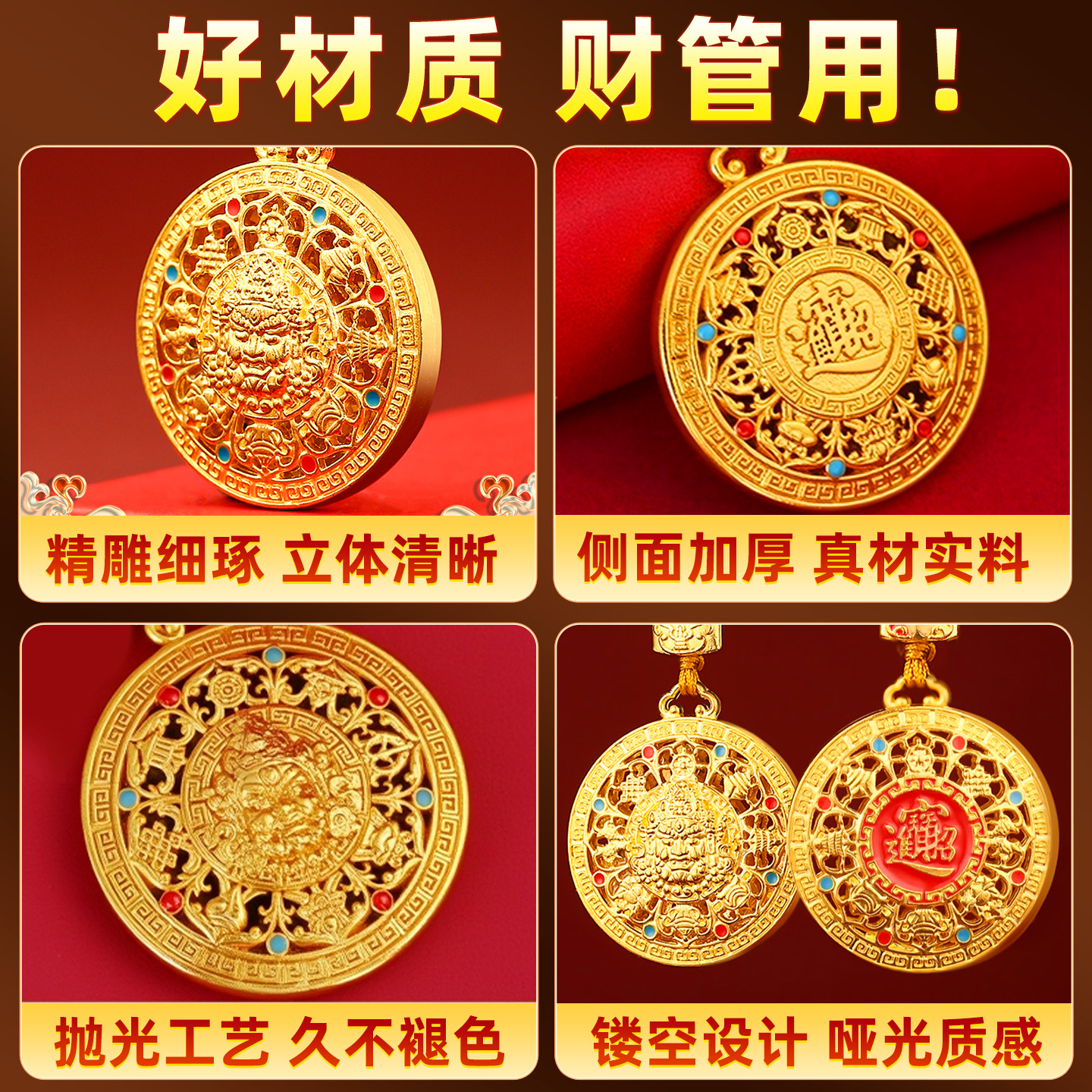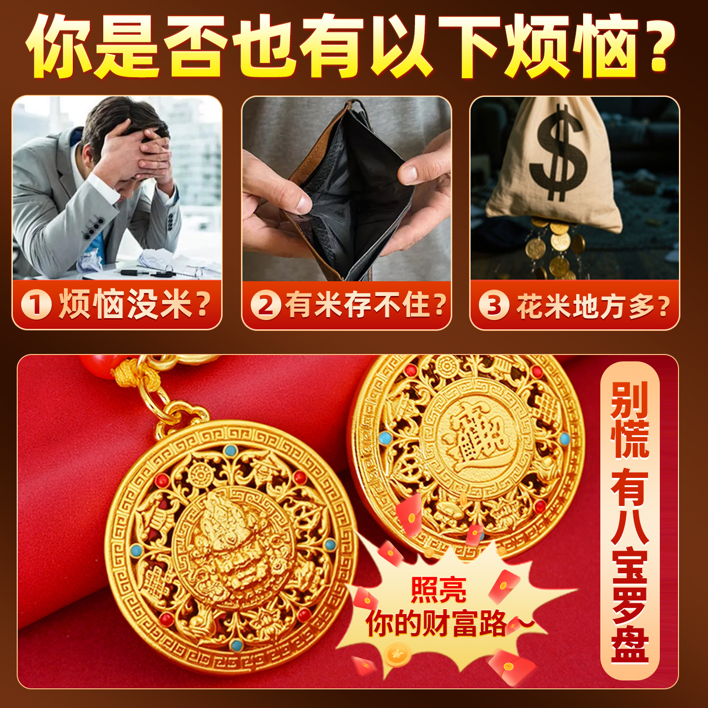 黄财神八宝罗盘吊坠钥匙扣挂件合金招财进宝八方来财金色本命年