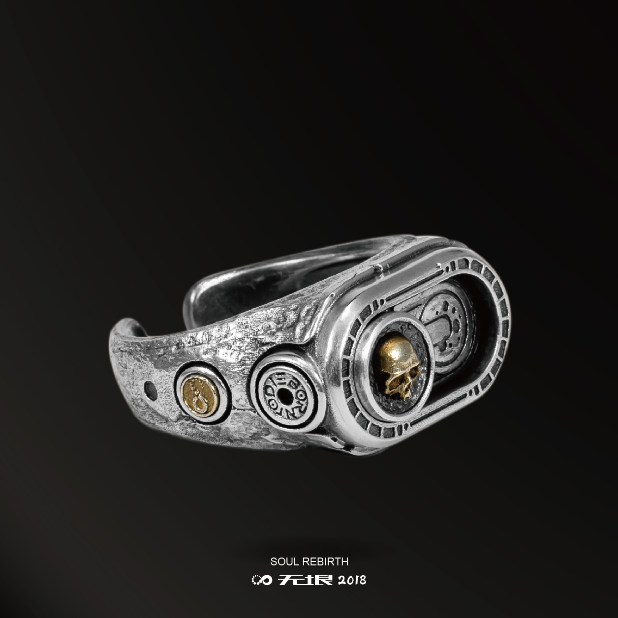 WUYIN无垠 灵魂重生系列之异界穿梭 925银啪啪币结构磁吸设计戒指