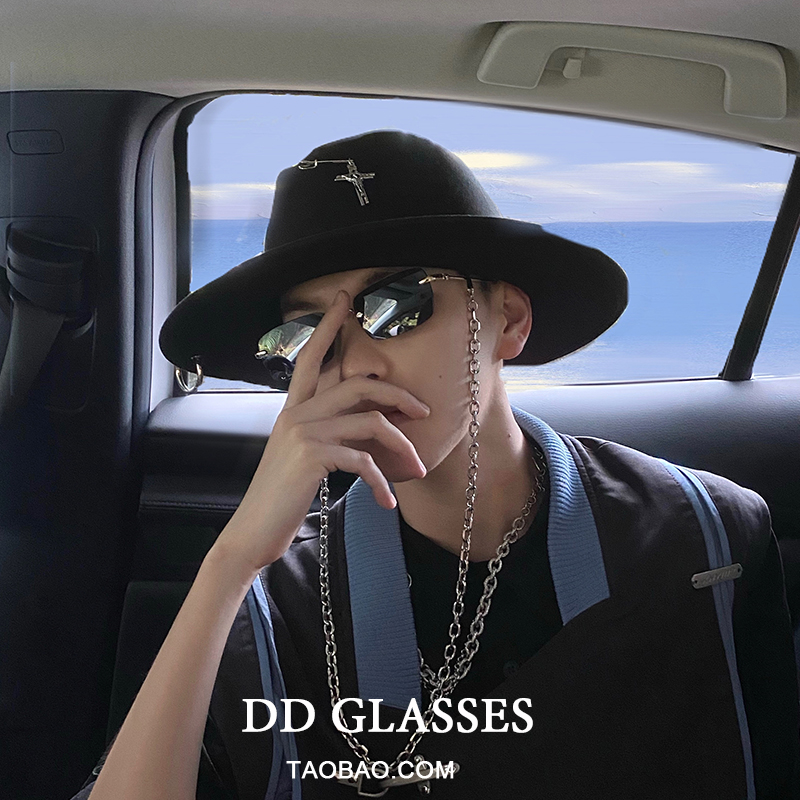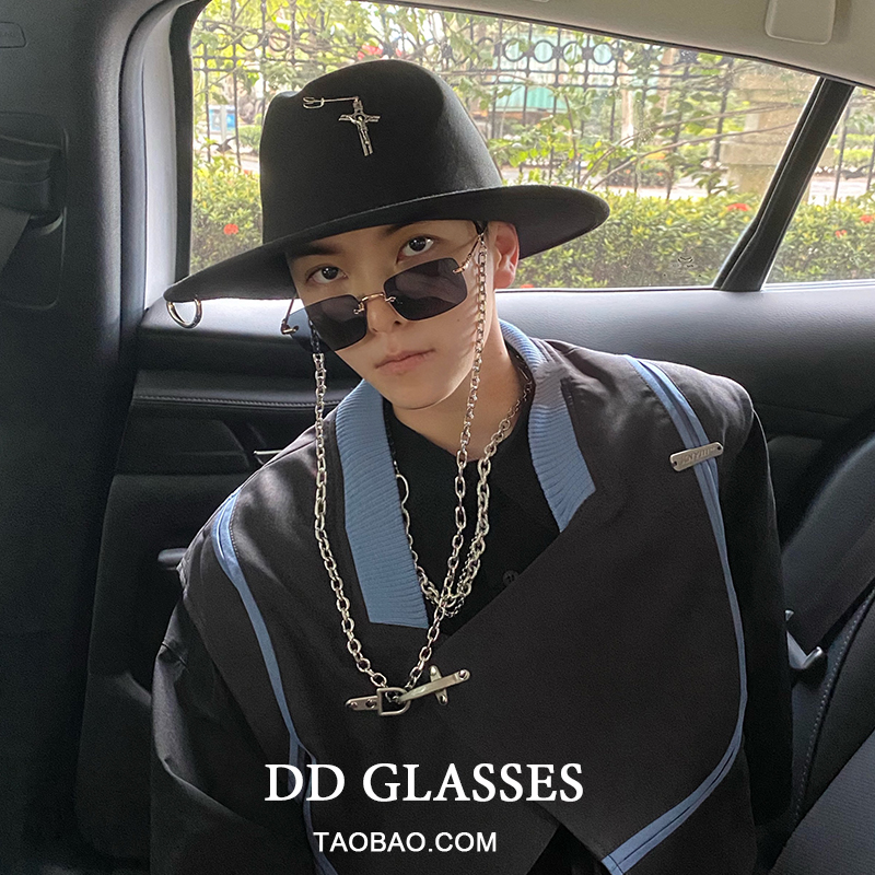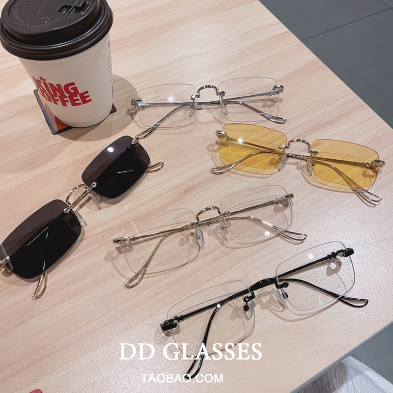 无框眼镜女潮ins网红黄色太阳镜韩版复古小框个性时尚墨镜男圆脸