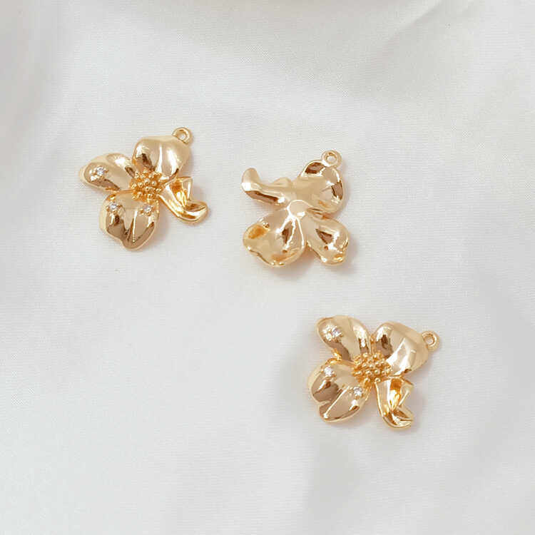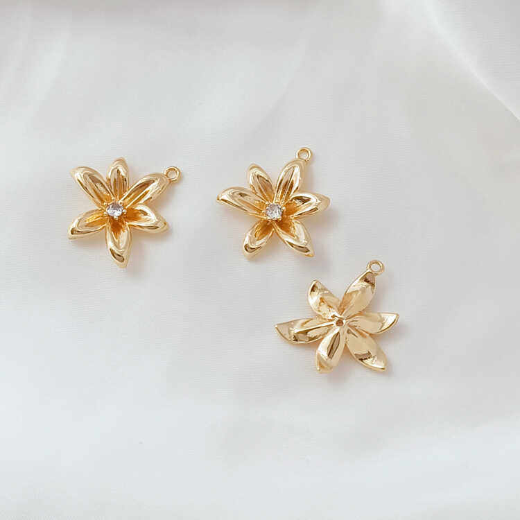 14K包金铜保色五瓣立体花托花帽古风diy手工串珠发簪头饰材料配件