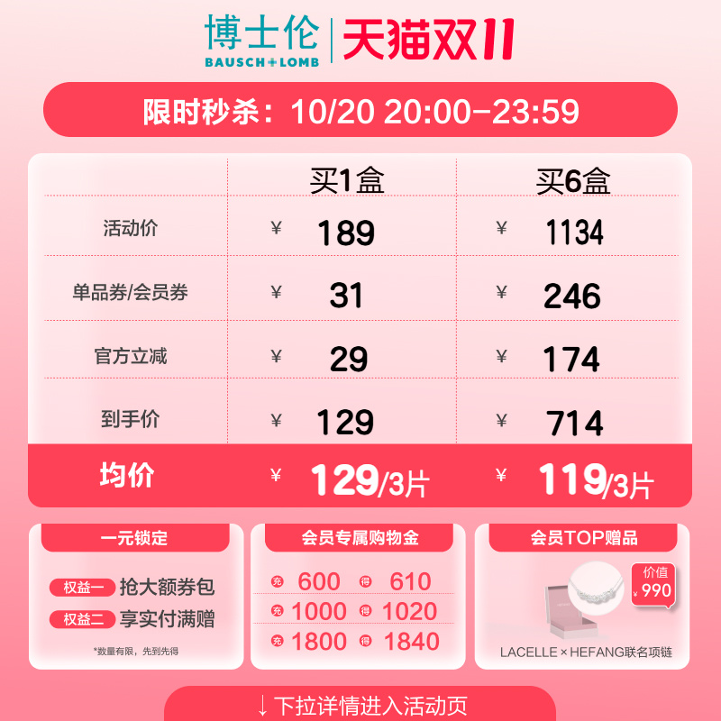 博士伦硅水凝胶隐形近视眼镜ultra奥澈月抛3片装旗舰店官方正品