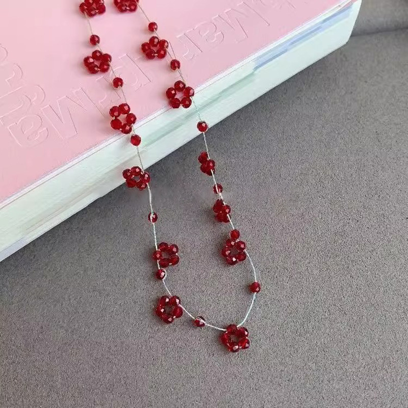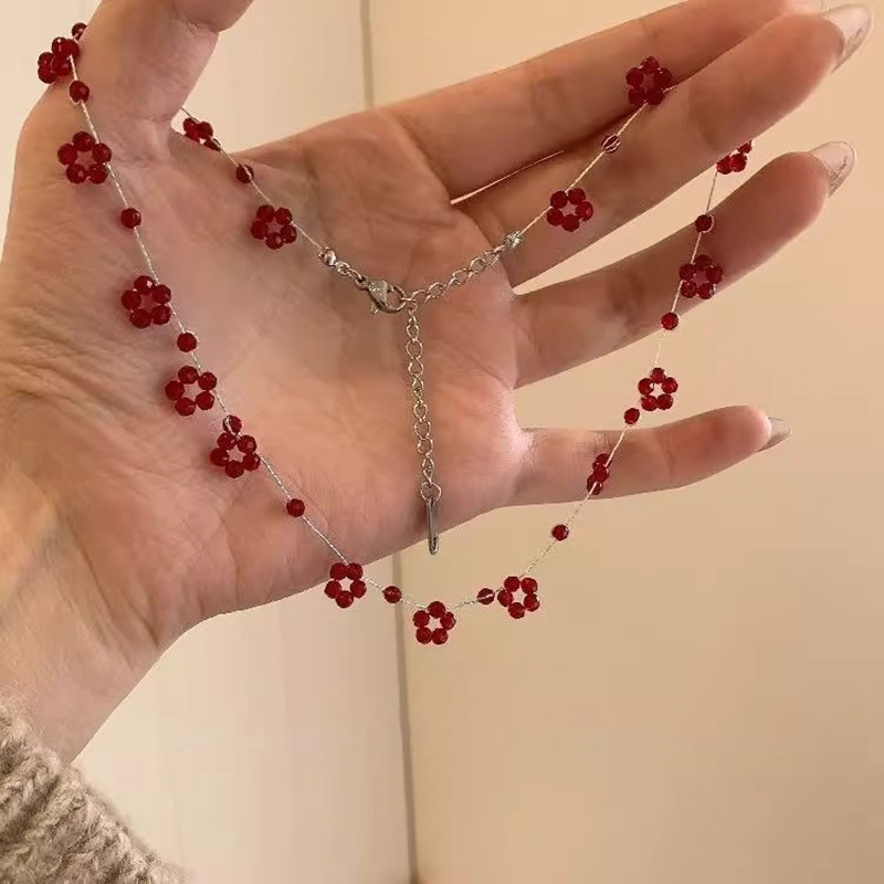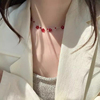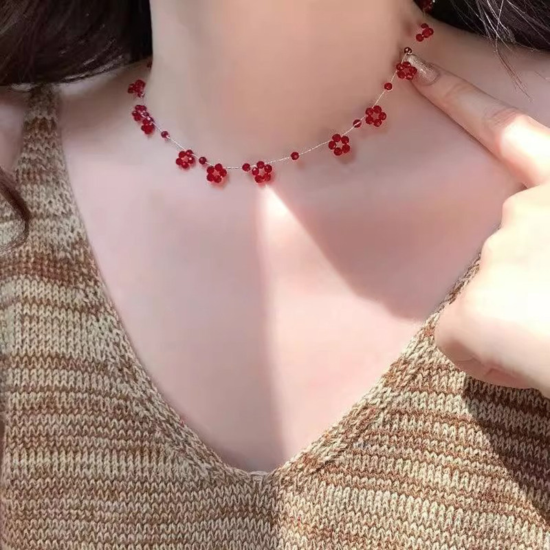 「山野莓莓」夏日小清新红色花朵多切面串珠项链显白轻奢锁骨链