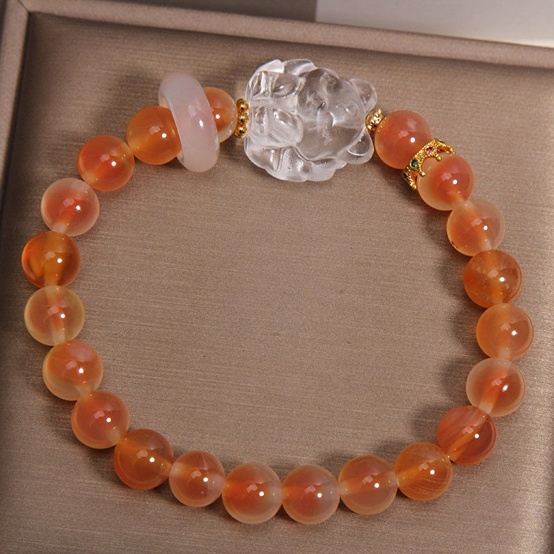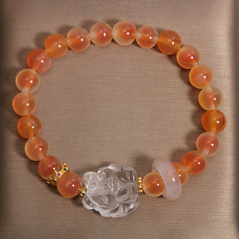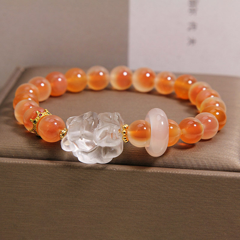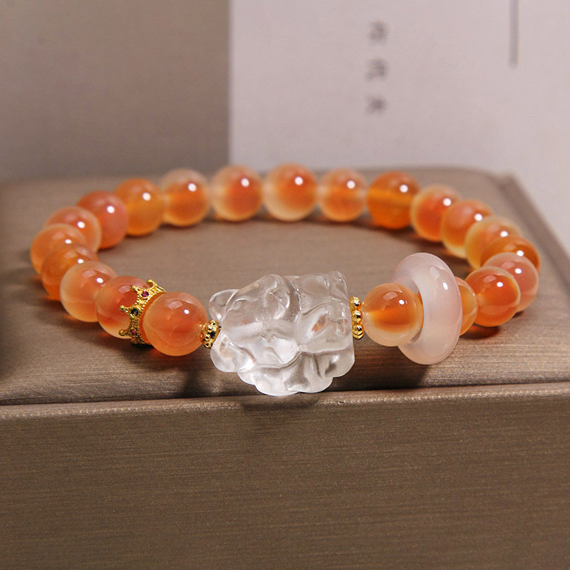 天然橙色糖心玛瑙手链女轻奢小众高级感白水晶九尾狐招财转运手串