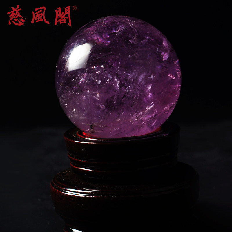 慈风阁白水晶球摆件白色紫色粉客厅招财装饰品天然巴西原石水晶球