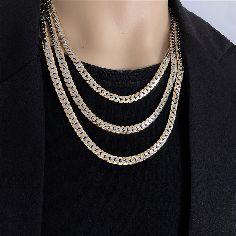 钛钢项链男配饰 Ins嘻哈小众轻奢金色压花链条古巴锁骨链刀片链宽