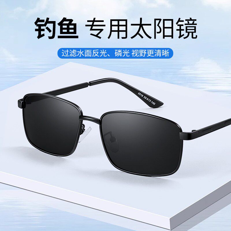 钓鱼专用男款偏光墨镜日夜两用驾驶防强光变色护目不夹头太阳眼镜