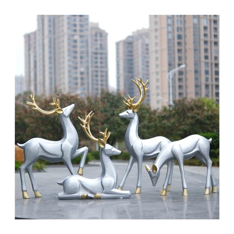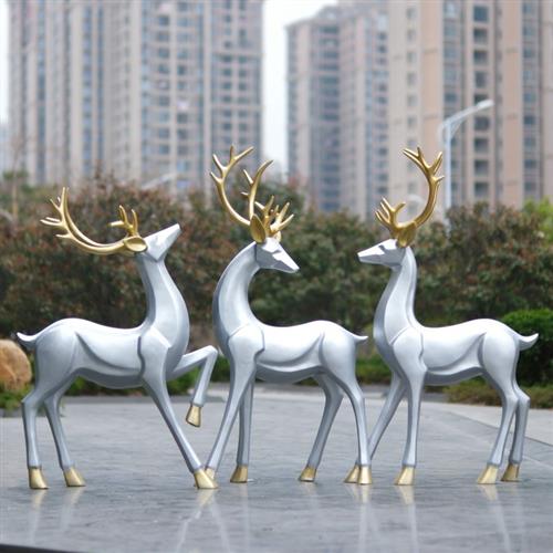 户外玻璃钢仿铜梅花鹿雕塑售楼部园林景观小区草坪落地装饰品摆件