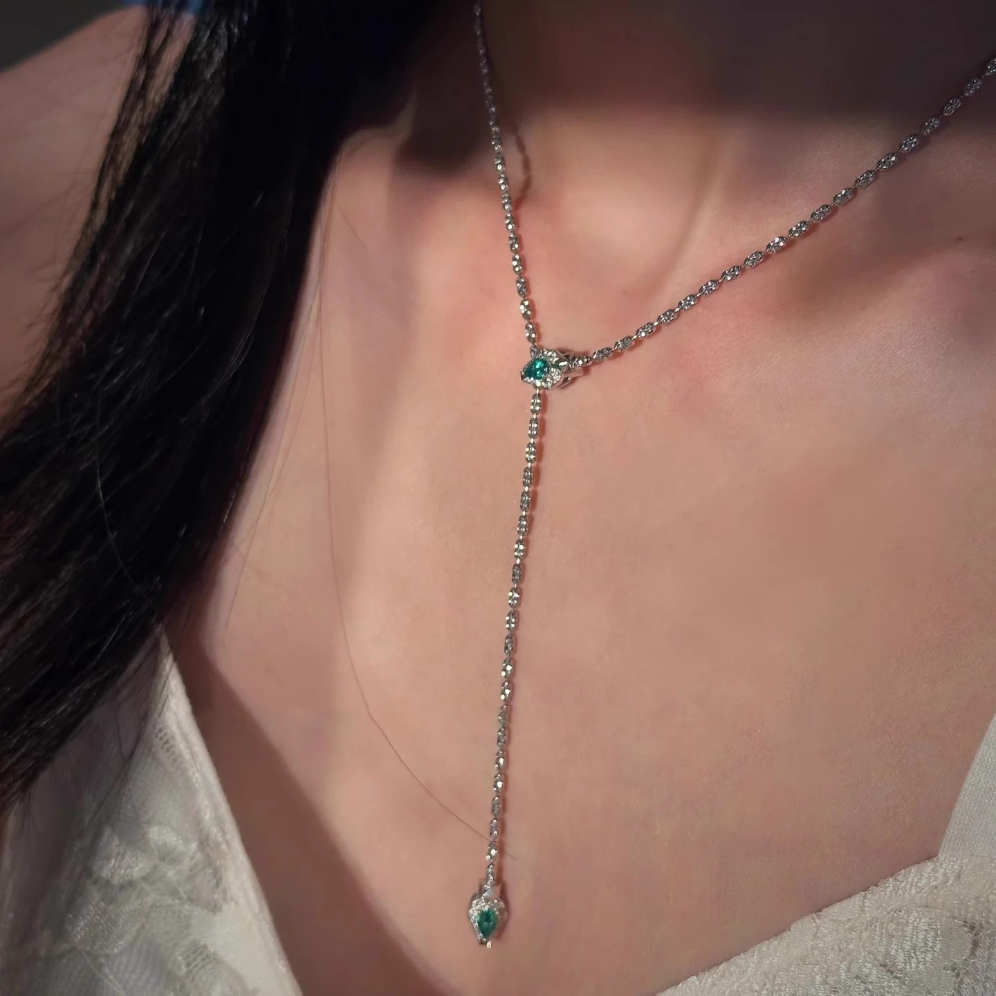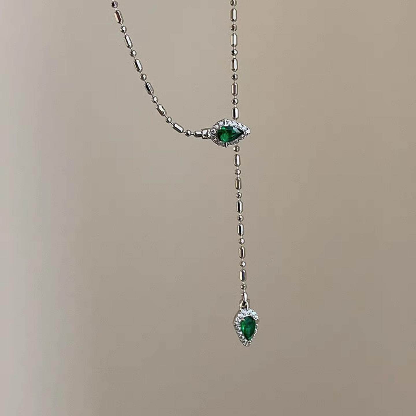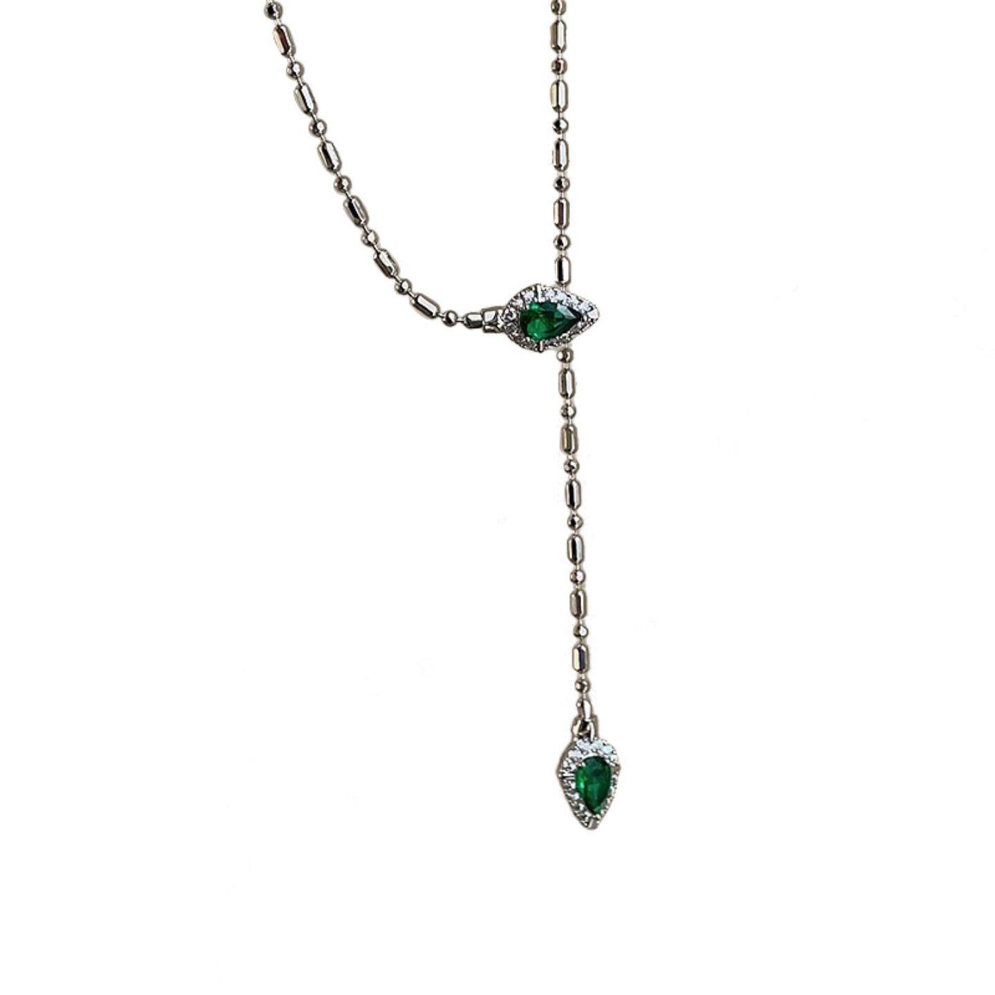 爆闪祖母绿色灵蛇项链女新款甜酷风个性时尚百搭颈链感锁骨链