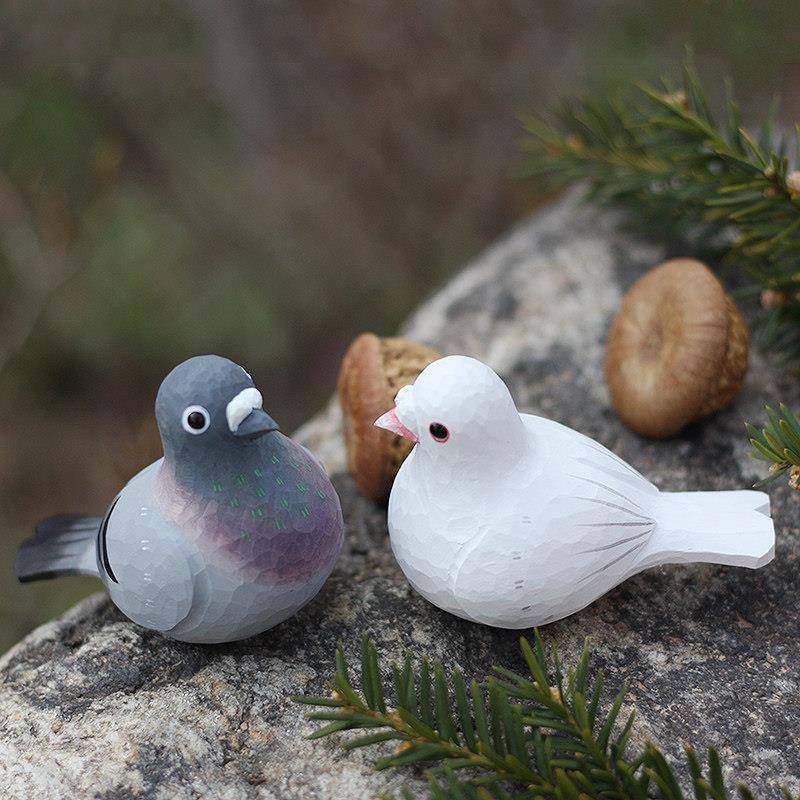 鹿妖商店 肥啾鸟木雕小鸟 和平鸽子 白鸽手工实木桌面摆件 小胖鸟