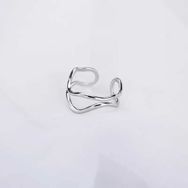 s925银波浪双层戒指女ins潮冷淡风高级感时尚个性开口指环