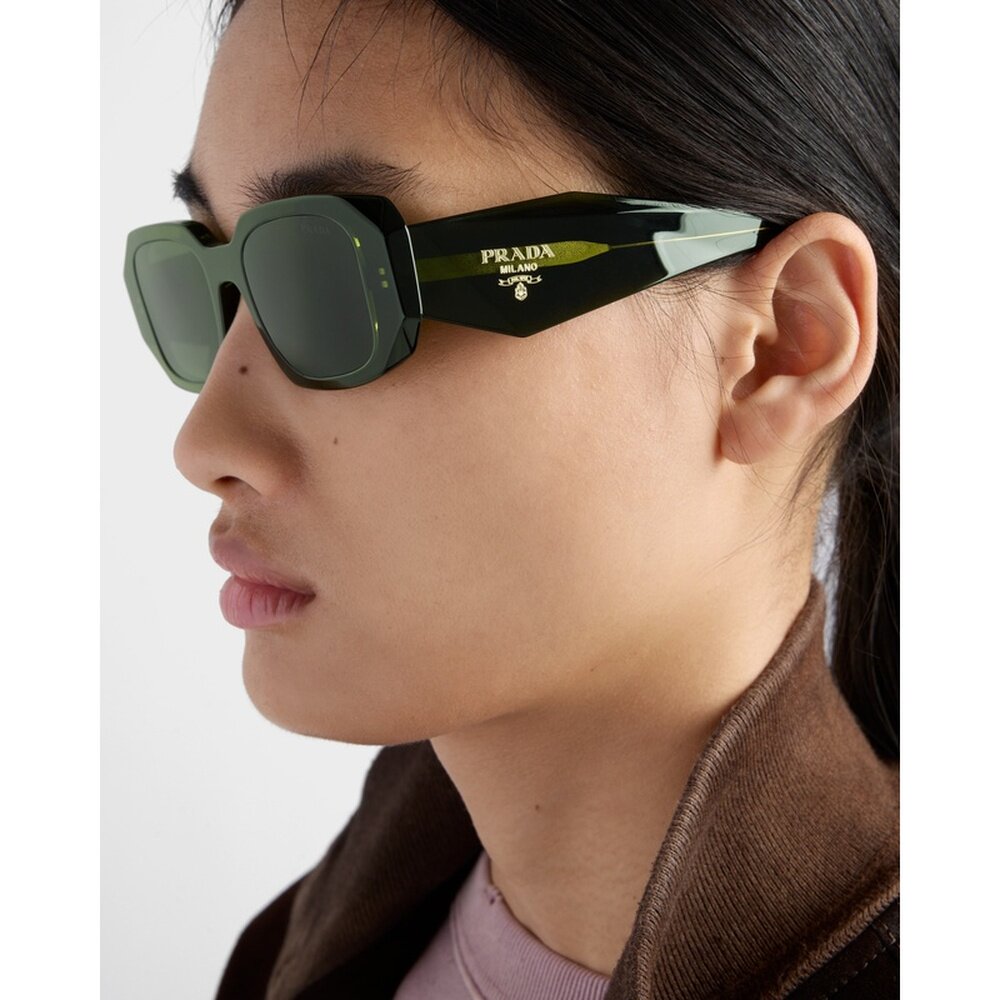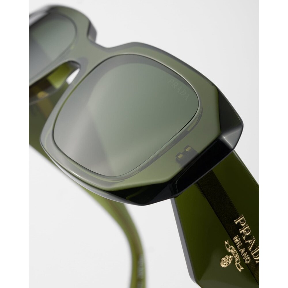 自营欧洲直邮Prada普拉达 Symbole系列女士军绿色醋酸纤维三角标