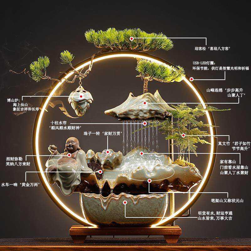 流水生财鱼缸摆件循环水风水轮转运球倒流香办公室装饰品开 业礼