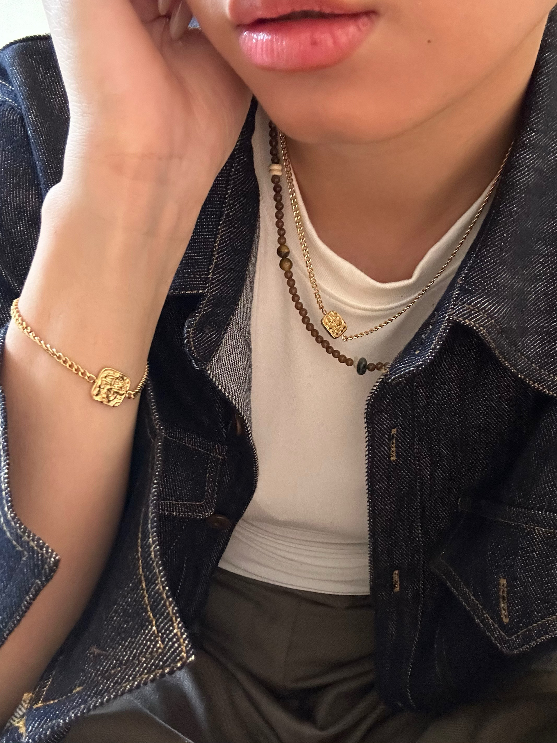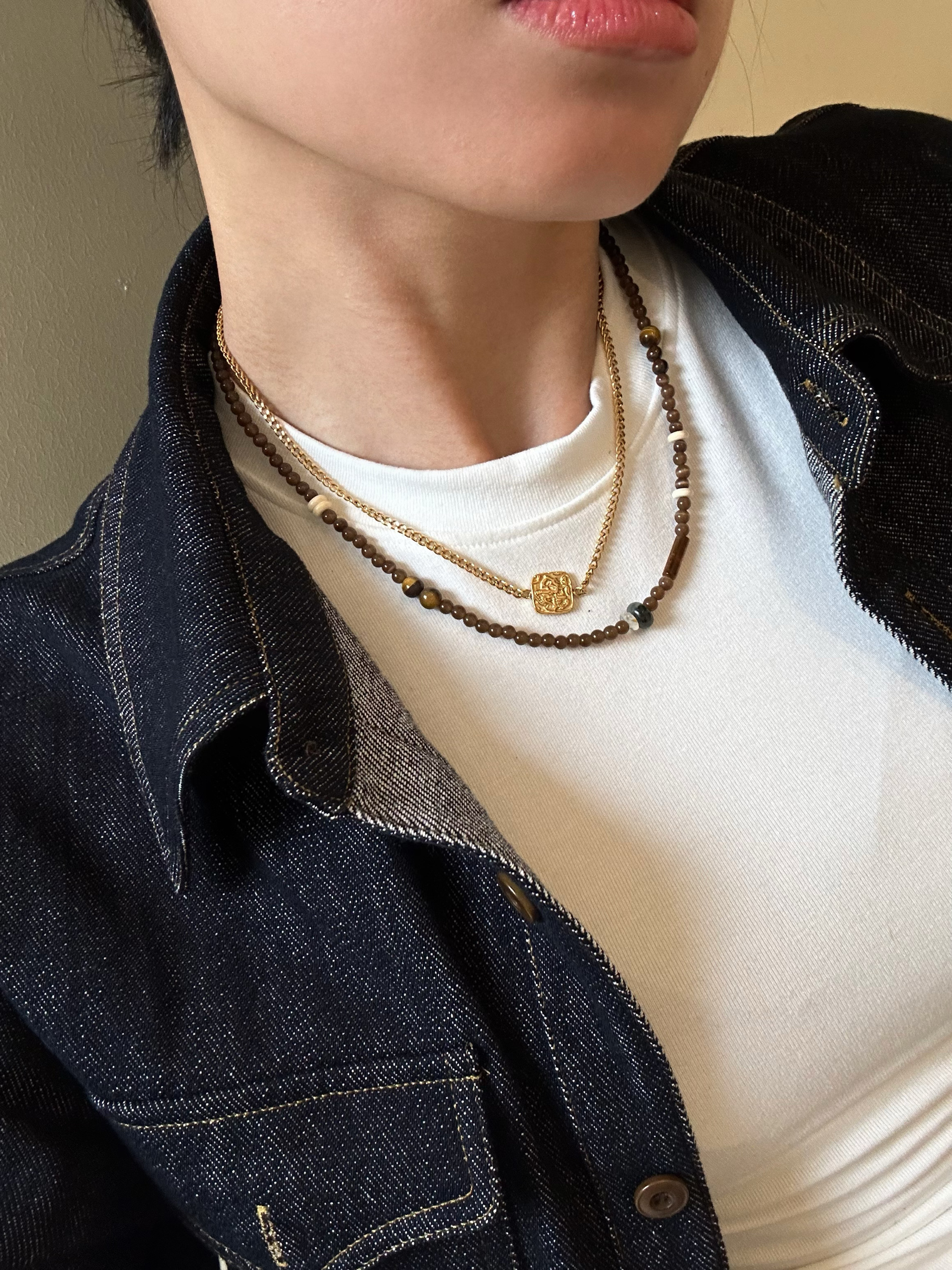 734钛钢复古串珠方牌choker项圈气质辣妹脖颈链小众设计高级项链