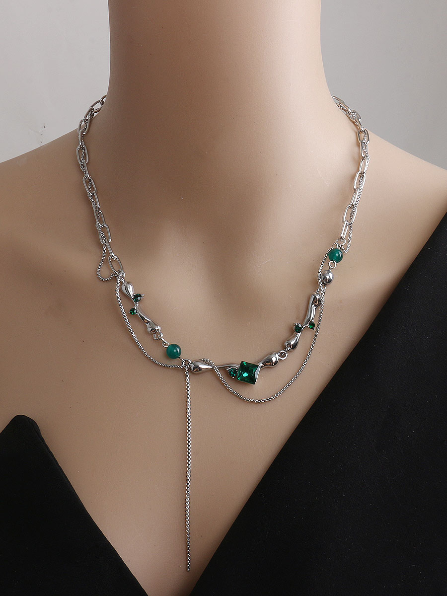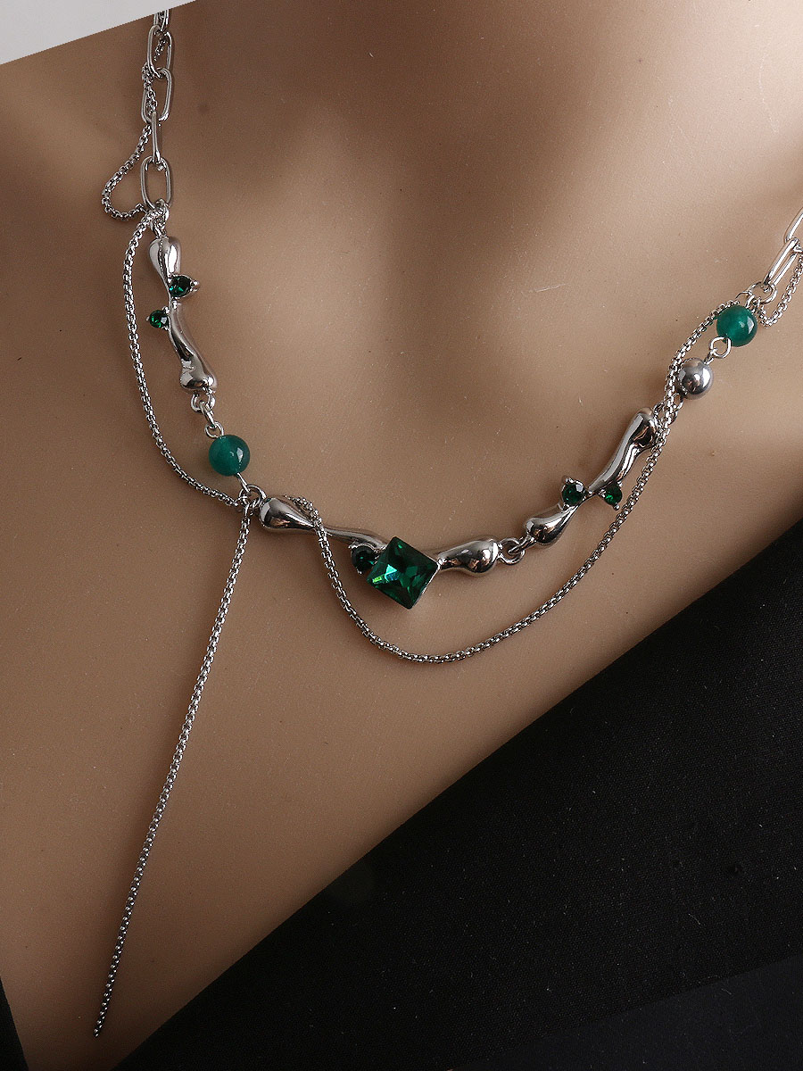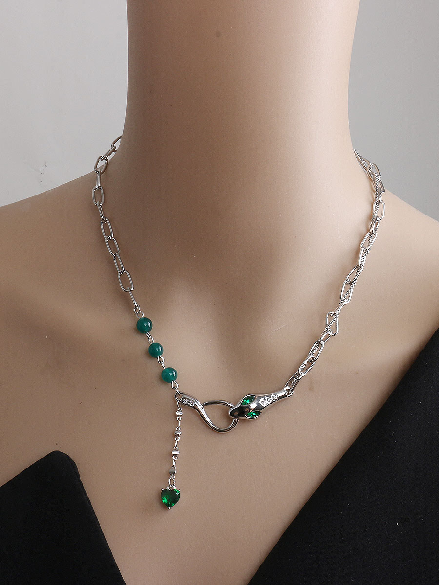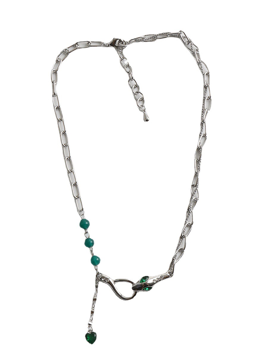 DCCHBC复古甜酷辣绿色宝石串珠锁骨链女小众设计爱心短款项链颈链