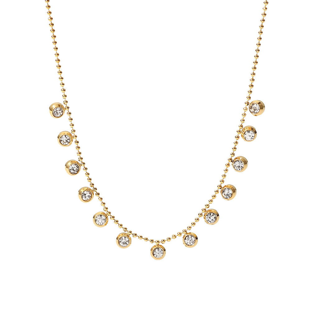 INS法式新款镶钻流苏颈链时尚百搭钛钢项链白色锆石不锈钢颈链女