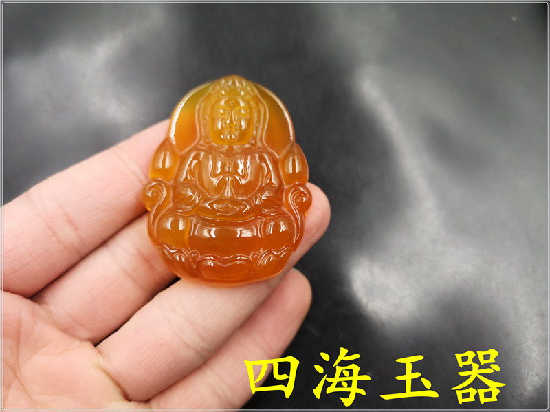 四海玉器 天然正品红玛瑙观音吊坠 浅红色玉髓大观音挂件 特价