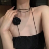 山茶花项链女choker项圈黑色玫瑰花颈带锁骨颈链素链脖子配饰系花