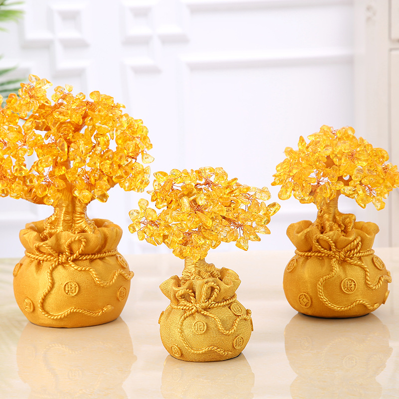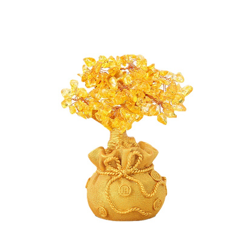天然黄水晶发财树工艺品摆件装饰品家居客厅玄关办公室开业礼品
