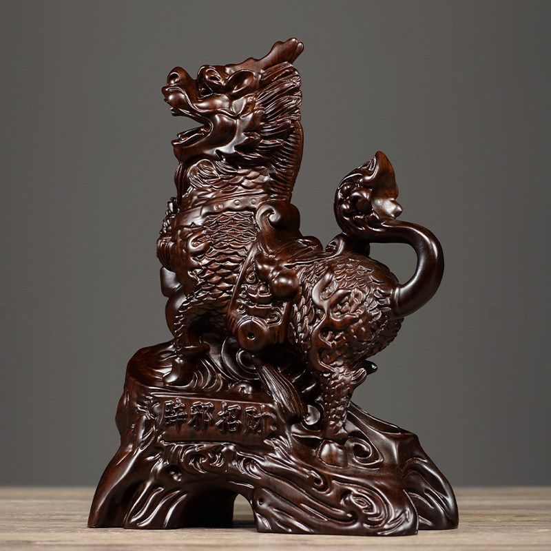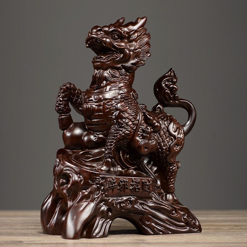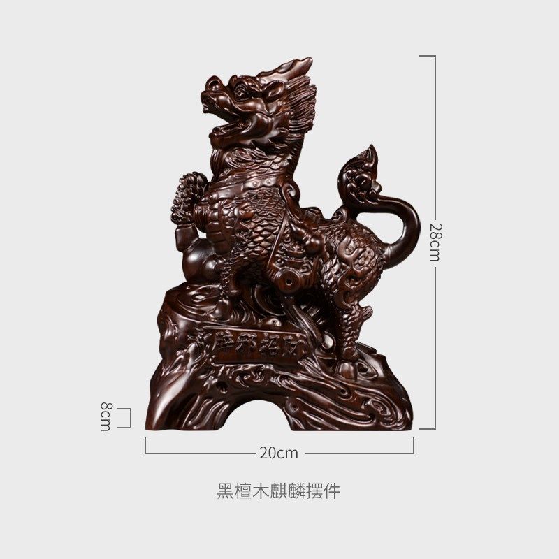 黑檀木雕刻麒麟摆件一对实木雕刻仿古卧室工艺品家居客厅红木装饰