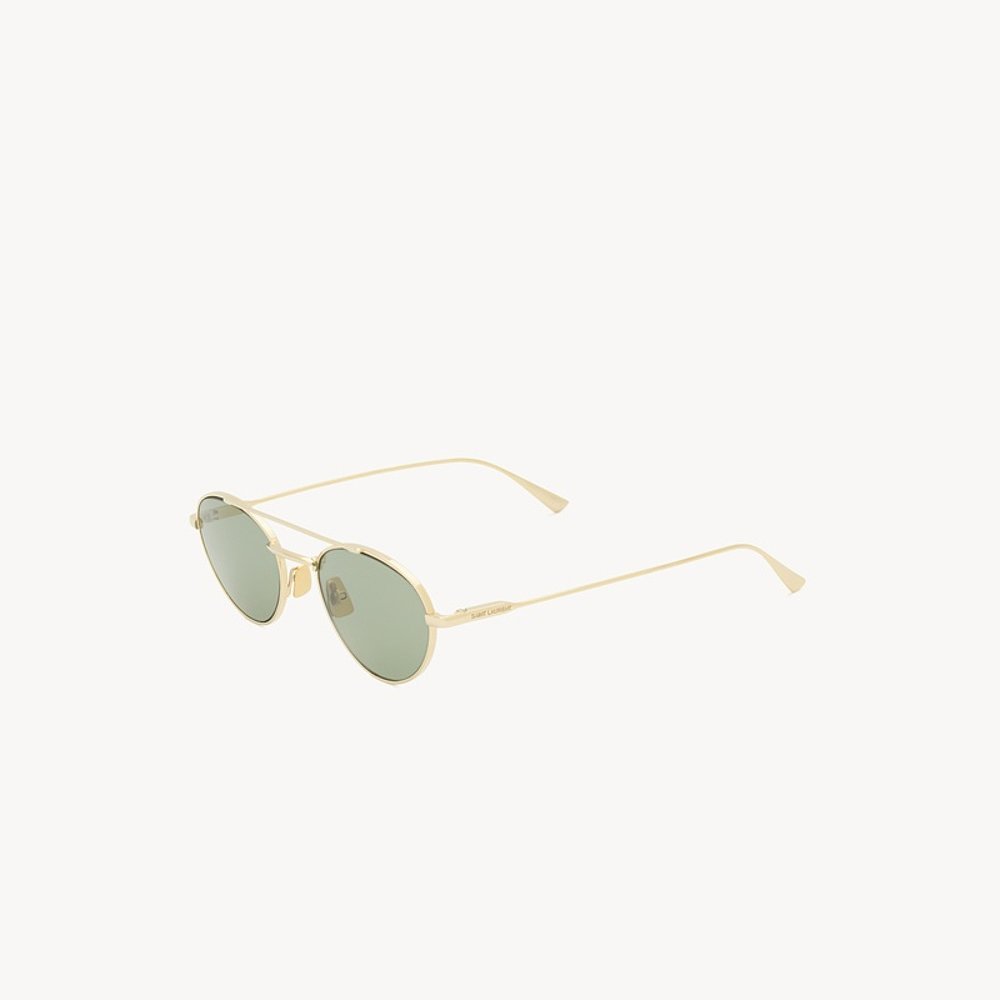 自营欧洲直邮YSL圣罗兰 SL 97女士浅金色/绿色金属圆形太阳镜