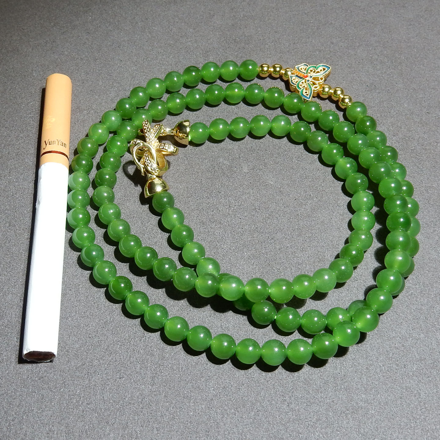 方言和田玉佩戴级俄罗斯老坑料阳绿色碧玉6mm圆珠项链多圈手串A5