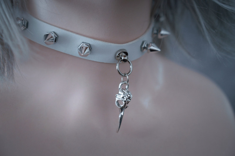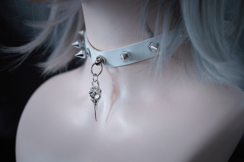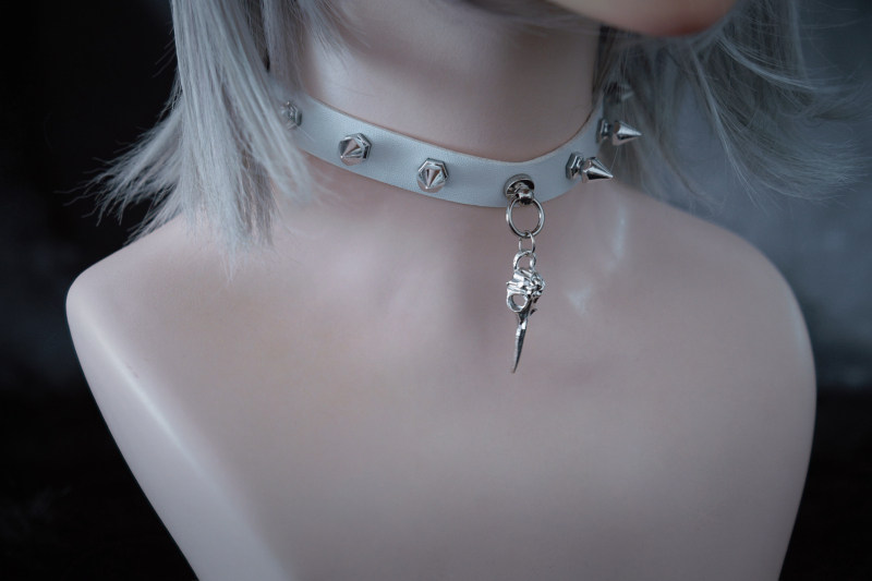 怪糖饰物集原创手工鸟骨吊坠铆钉仿皮颈链choker暗黑亚文化白色