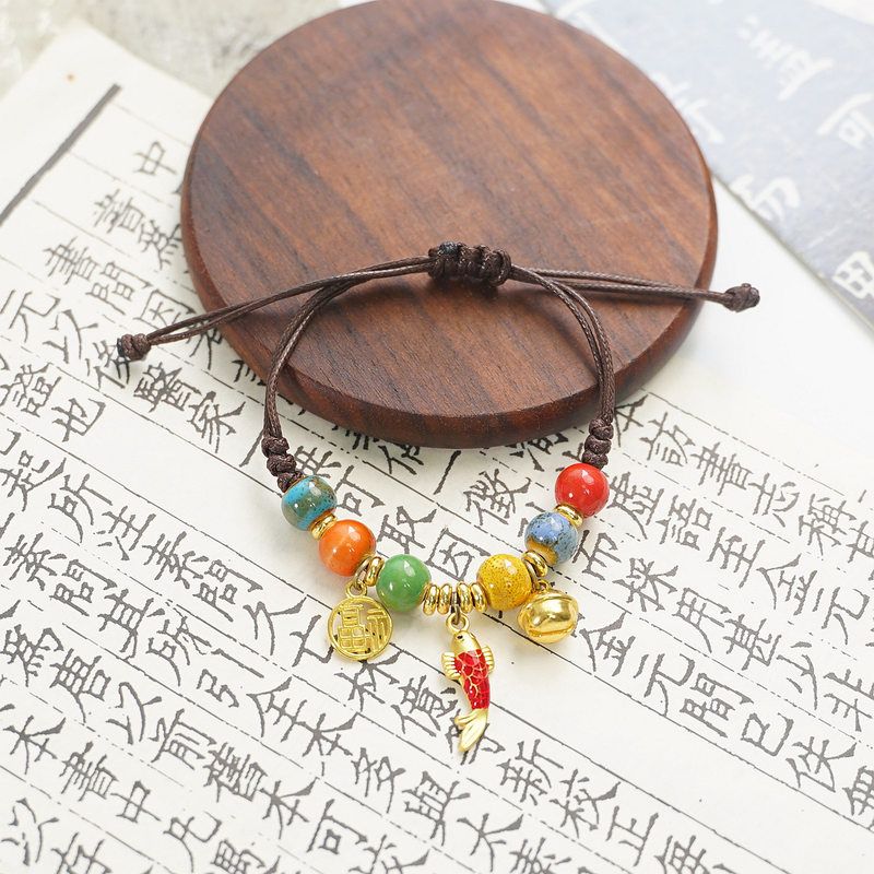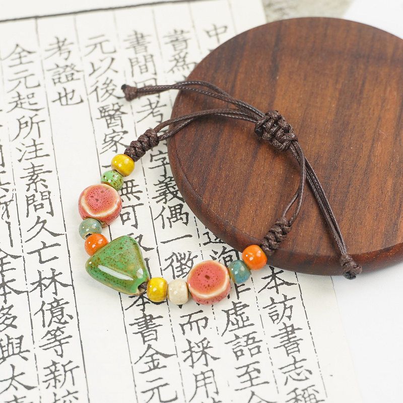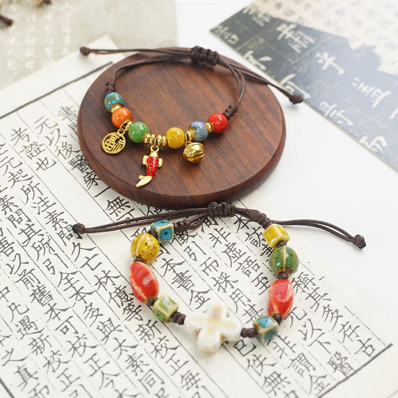 景德镇陶瓷串珠瓷珠手链花釉爱心手串女编织手绳情侣闺蜜学生手饰