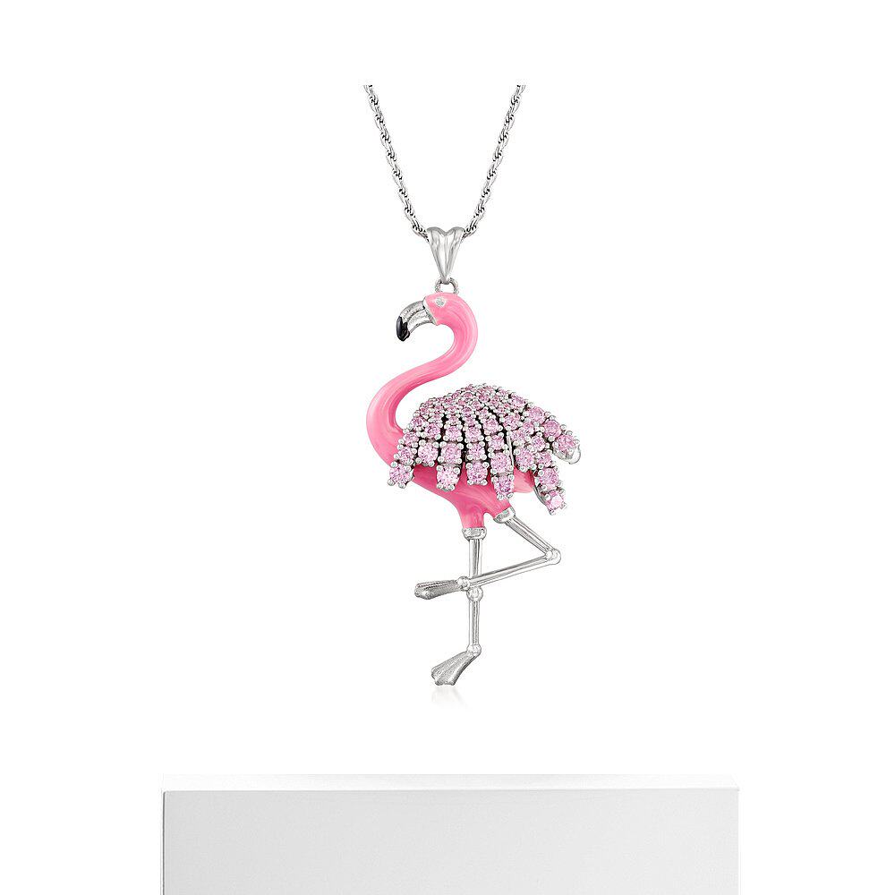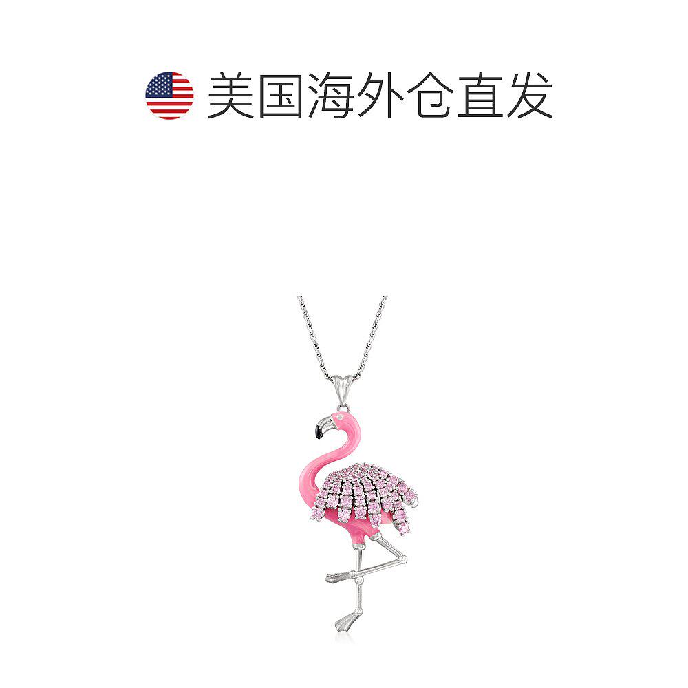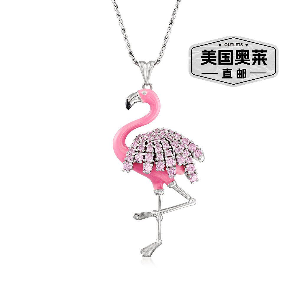 自营 Ross-Simons 925 纯银粉红色 CZ 火烈鸟吊坠项链配粉色珐琅