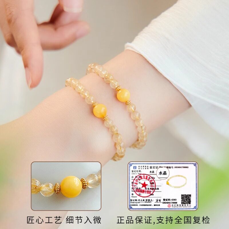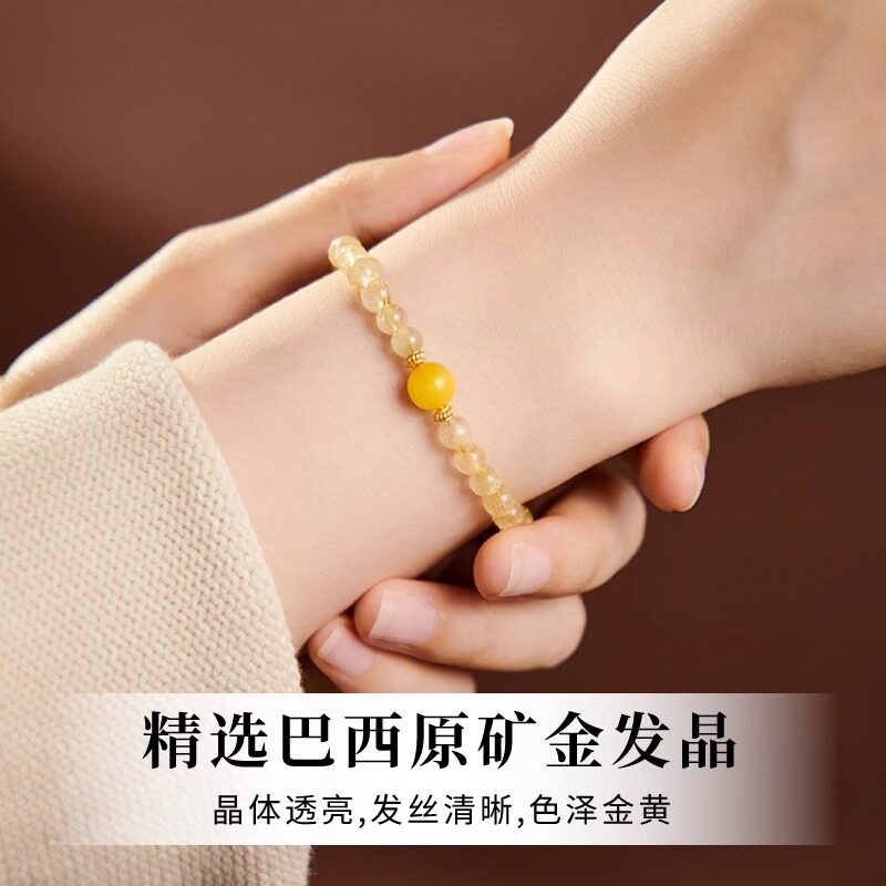 普陀山金发晶手串纯天然原石黄色水晶招财求财手链女款蜜蜡转运珠