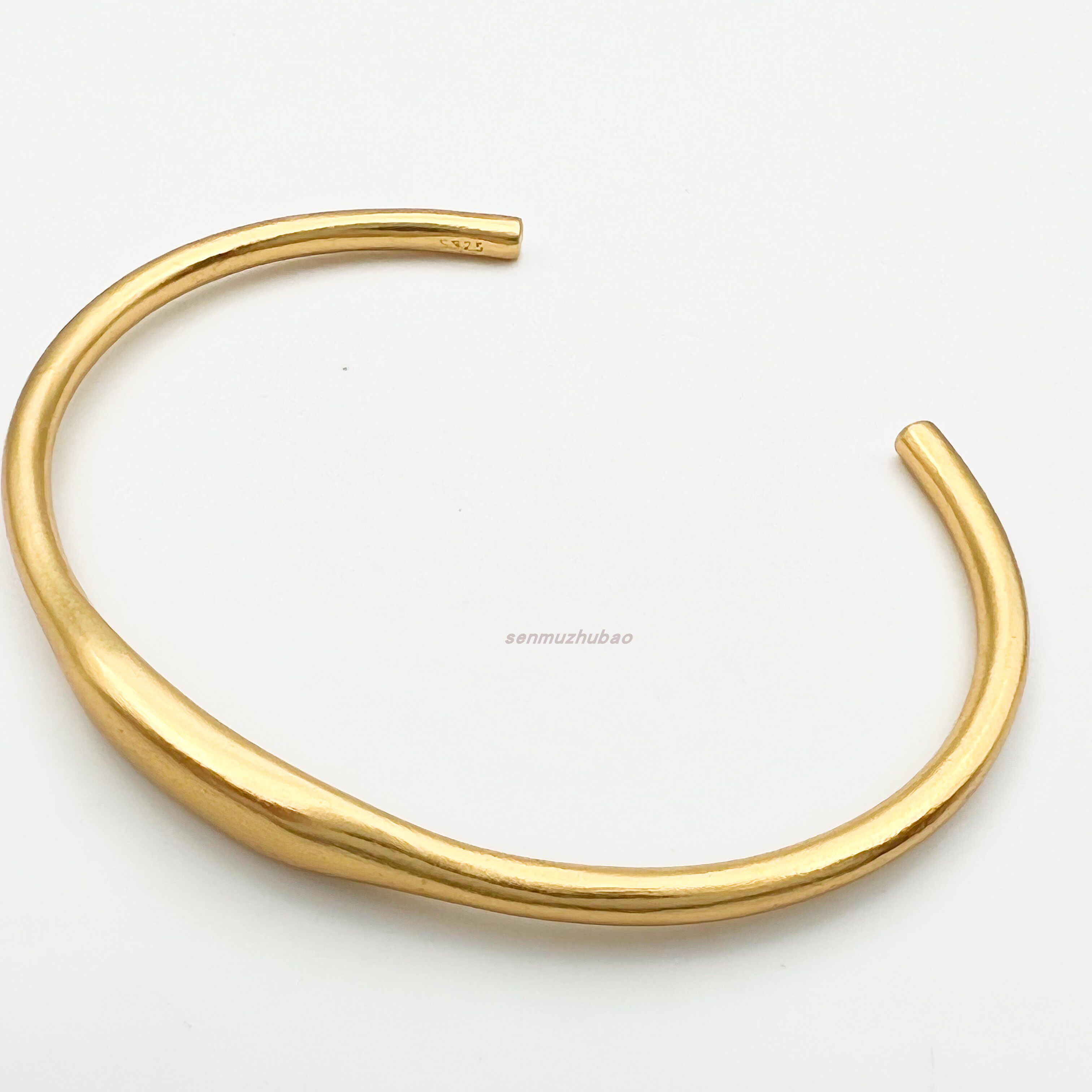 日系松本惠奈同款不规则开口手环极简小众复古磨砂S925纯银手镯