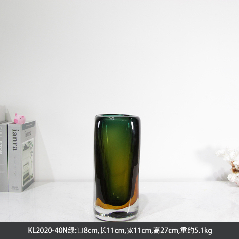 简约北欧插花加厚水晶圆形直筒花瓶创意花器样板间软装装饰品摆件