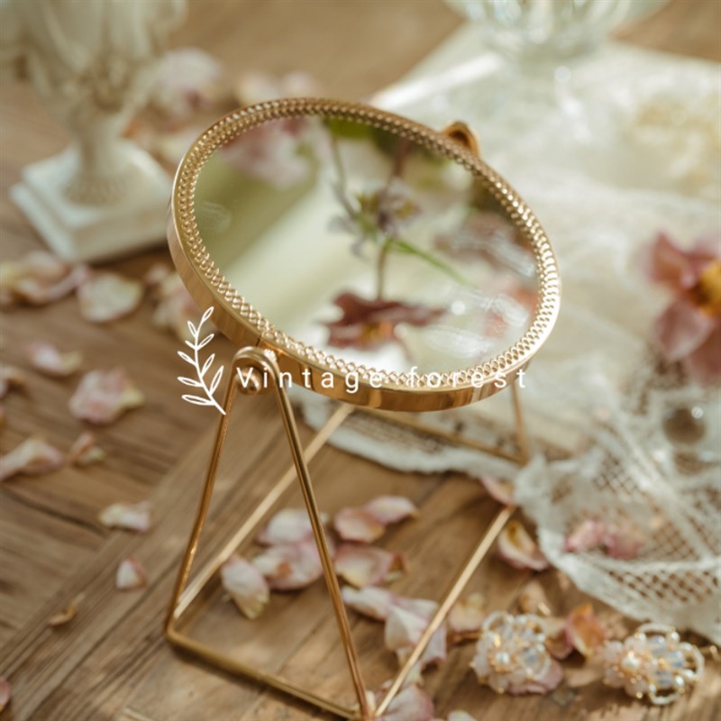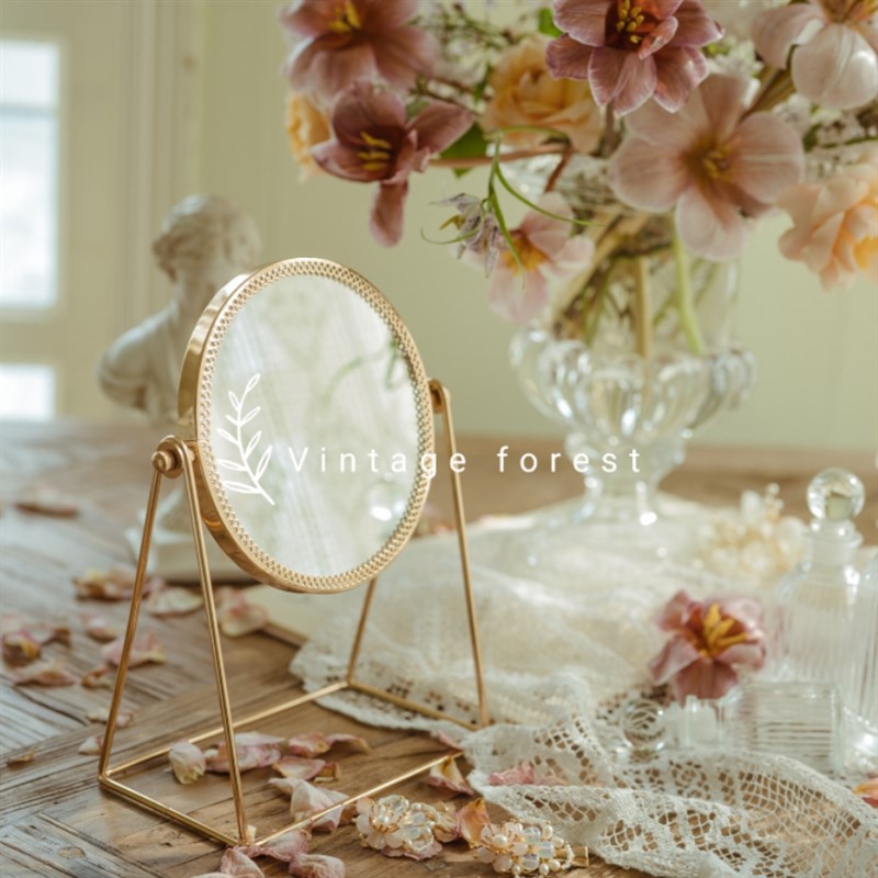 复古森林ins轻奢法式桌面化妆镜台F式金边镜子便携宿舍卧室梳妆镜