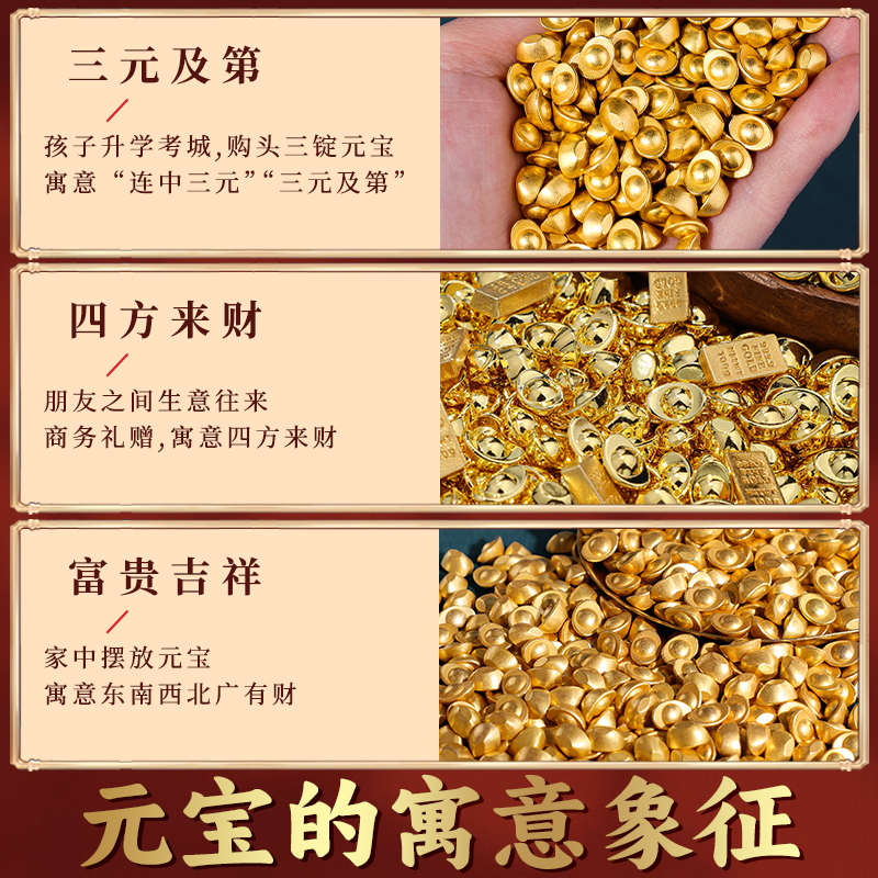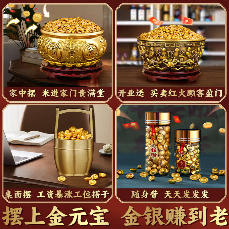 金元宝摆件招财沙金小元宝实心铜元宝聚宝盆迷你黄铜米缸金条礼品