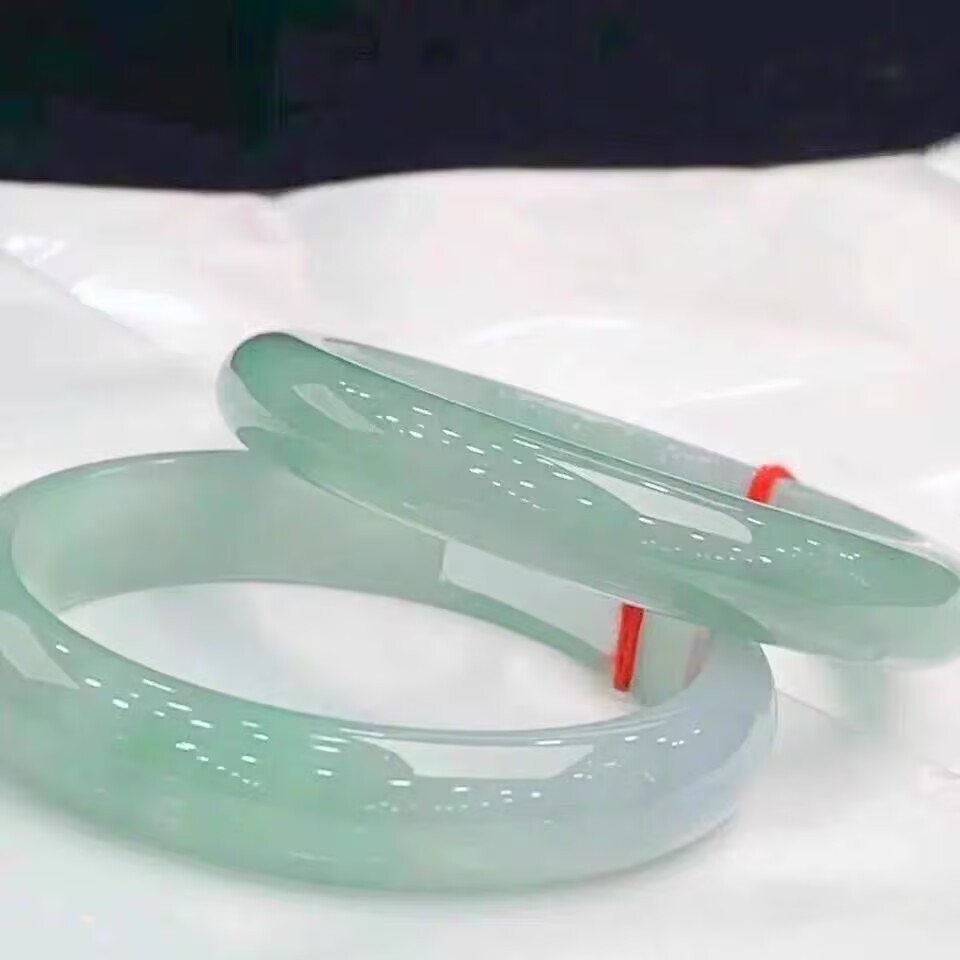冰晴翡翠色冰种油青飘花玉手镯少女款翠绿色翡翠手镯正圈玉石手镯