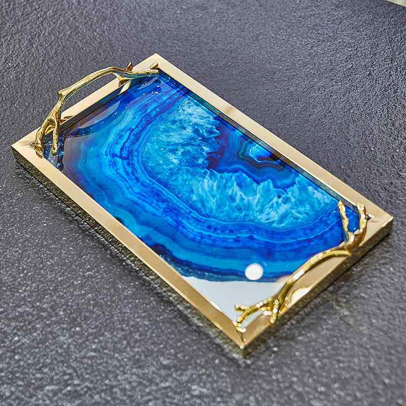 正品北欧美轻奢蓝玛瑙石图案装饰托 托盘式欧式厅茶几创意收色客