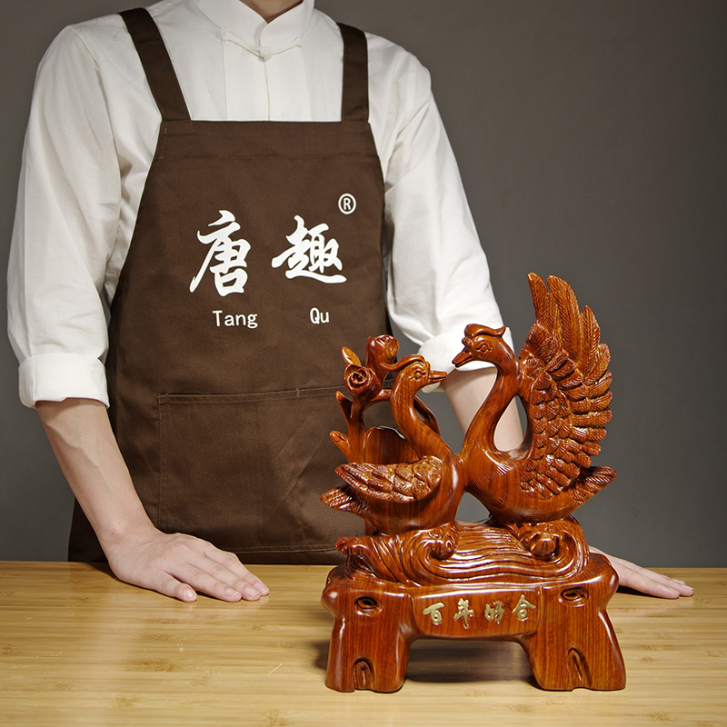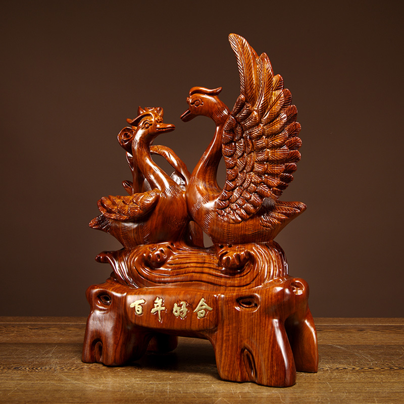 花梨木雕刻百年好合天鹅摆件家居客厅电视柜酒柜装饰品结婚送礼品