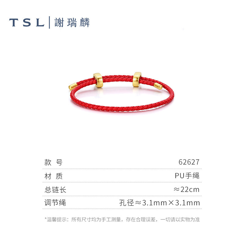 TSL谢瑞麟转运珠手绳红色黑色手绳猪鼻扣可调节款62627-62628