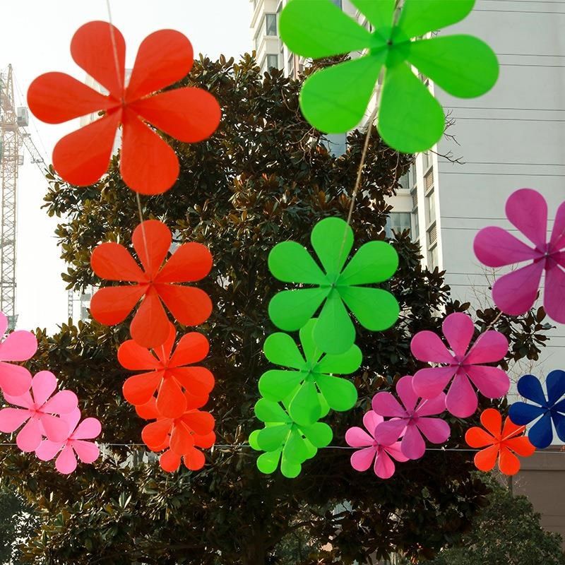 风车串悬挂幼儿园风车装饰t 户外 旋转树叶厚款塑料一体成形免安
