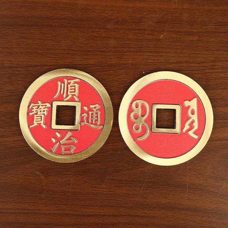 黄铜加厚五帝钱红色抛光款五帝钱摆件顺治康熙雍正乾隆嘉庆铜钱