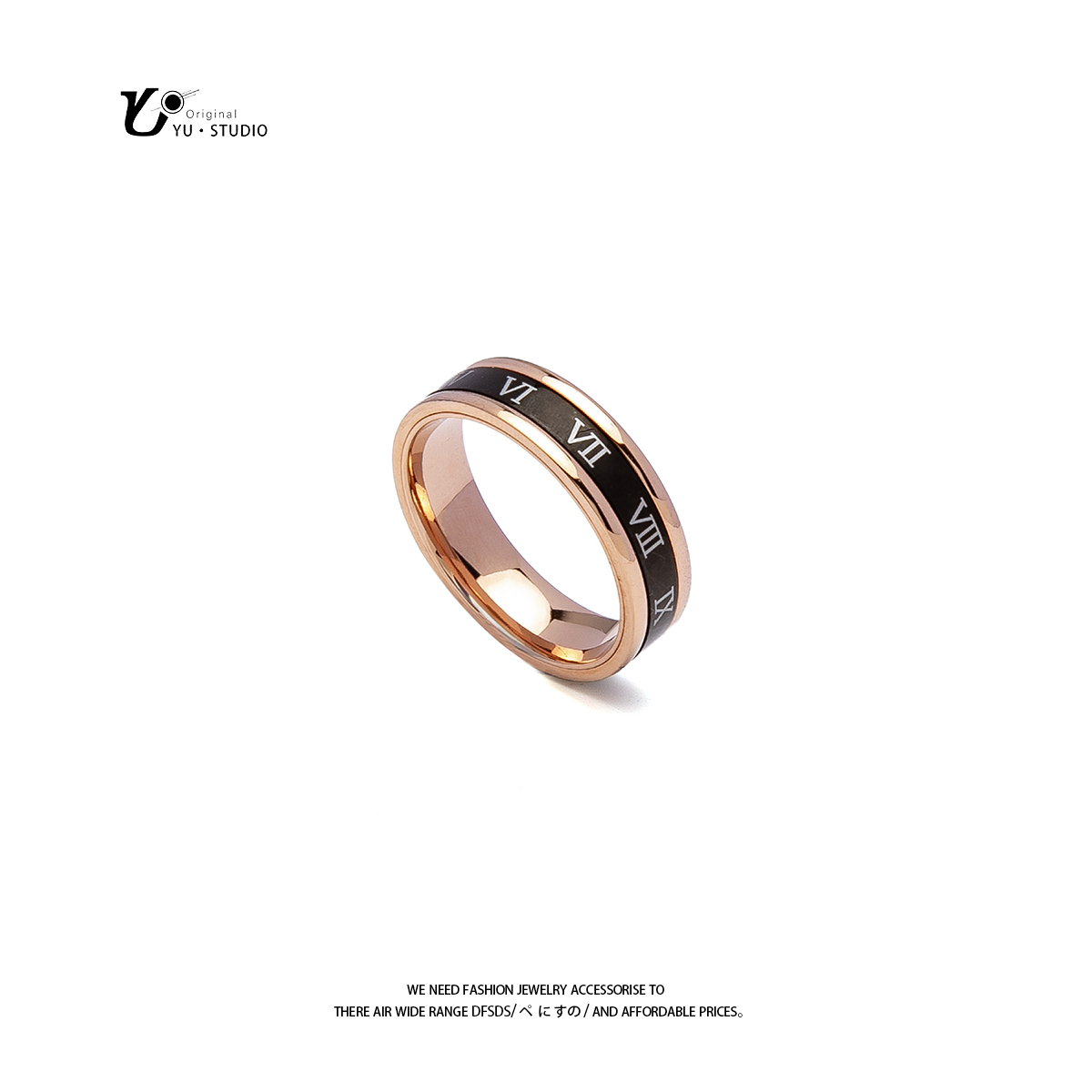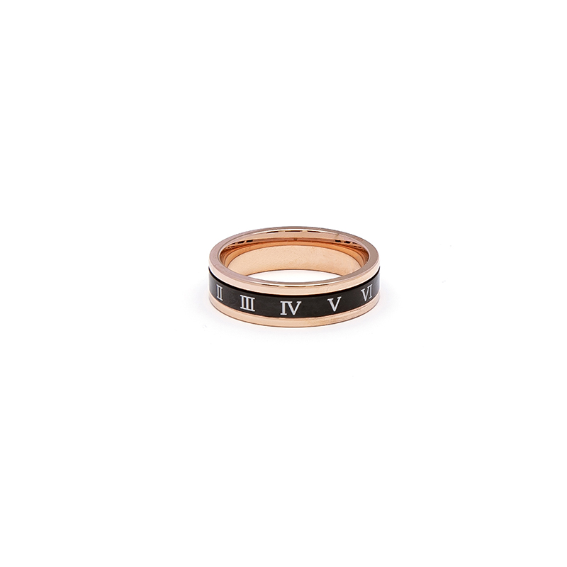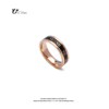YUSTUDIO韩版罗马字母黑色玫金戒指时尚百搭气质小众轻奢钛钢指环