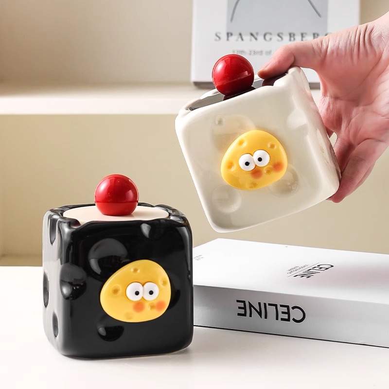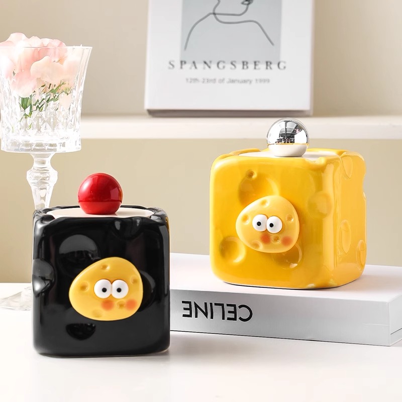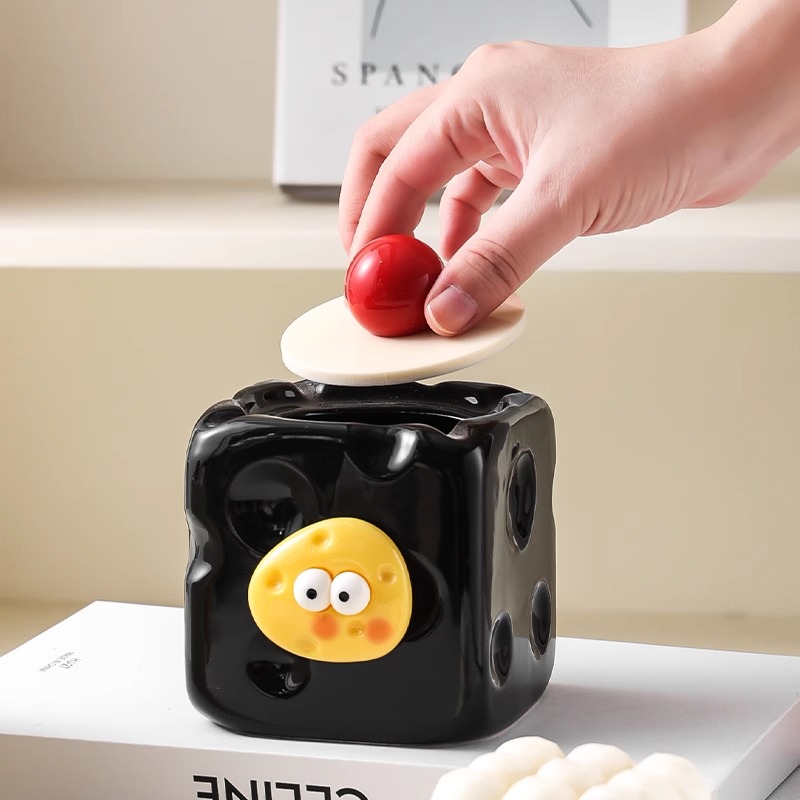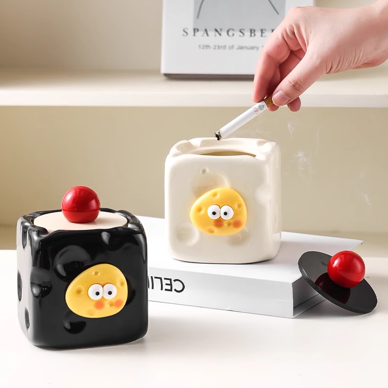奶酪烟灰缸摆件可爱创意卡通防飞灰带盖家用办公室高级感卧室茶几