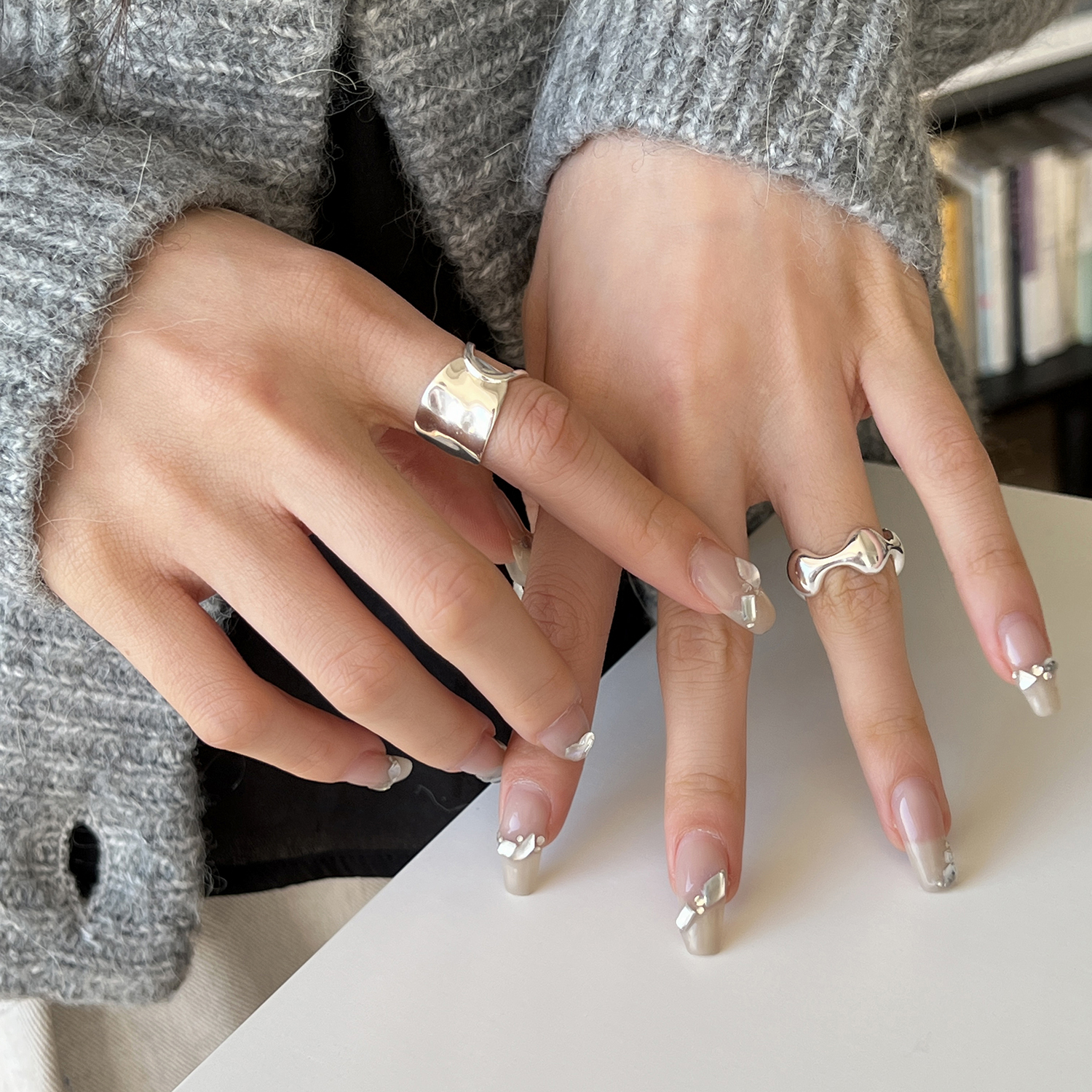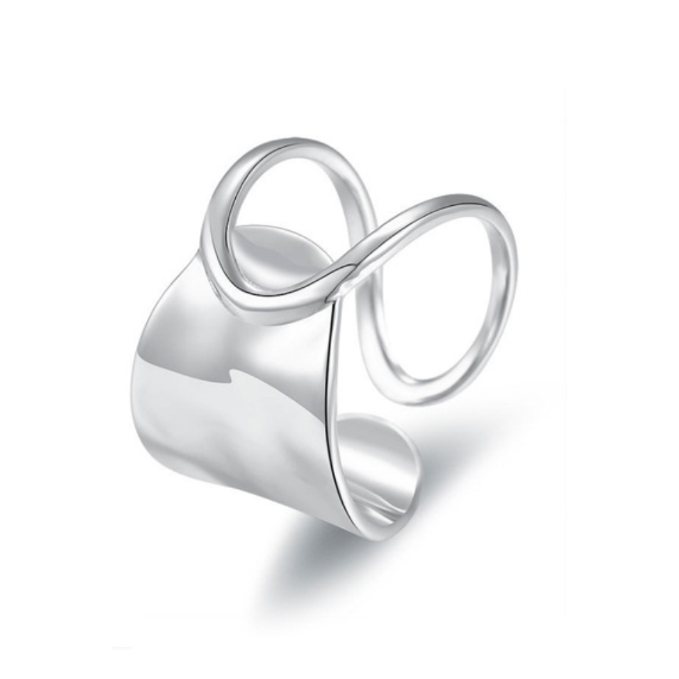S925纯银戒指女款个性时尚几何设计捶纹拼接异形线条开口戒指简约
