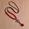 朱砂毛衣链莲花吊坠红色长款项链女秋冬衣服配饰品挂件Z民族风挂