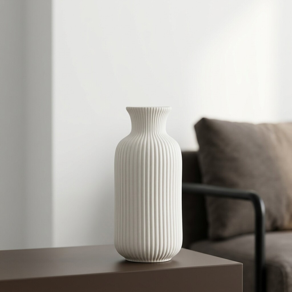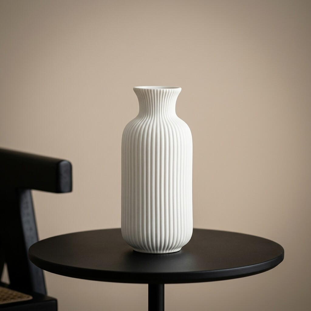 简约白色陶瓷花瓶竖条纹装饰摆件客厅桌面插花器家居饰品
