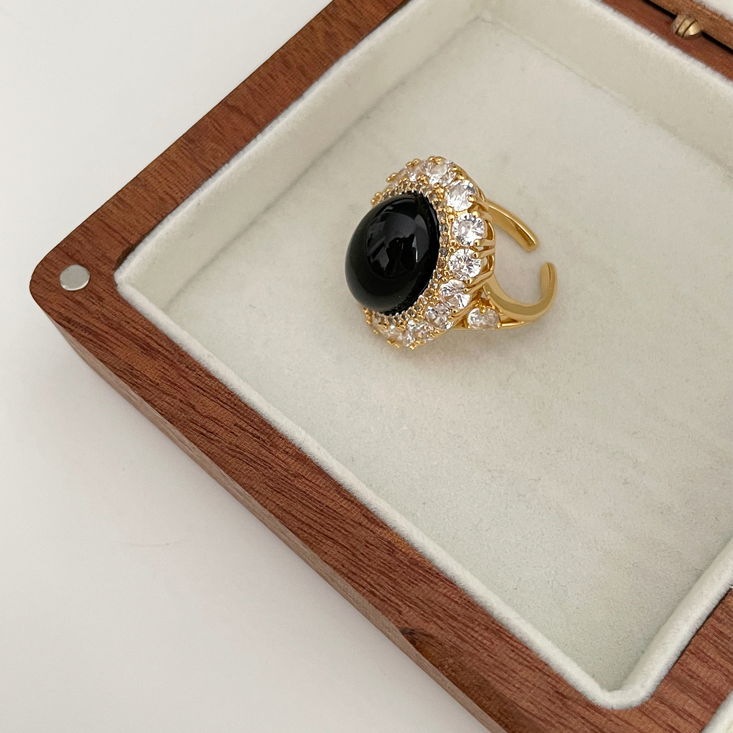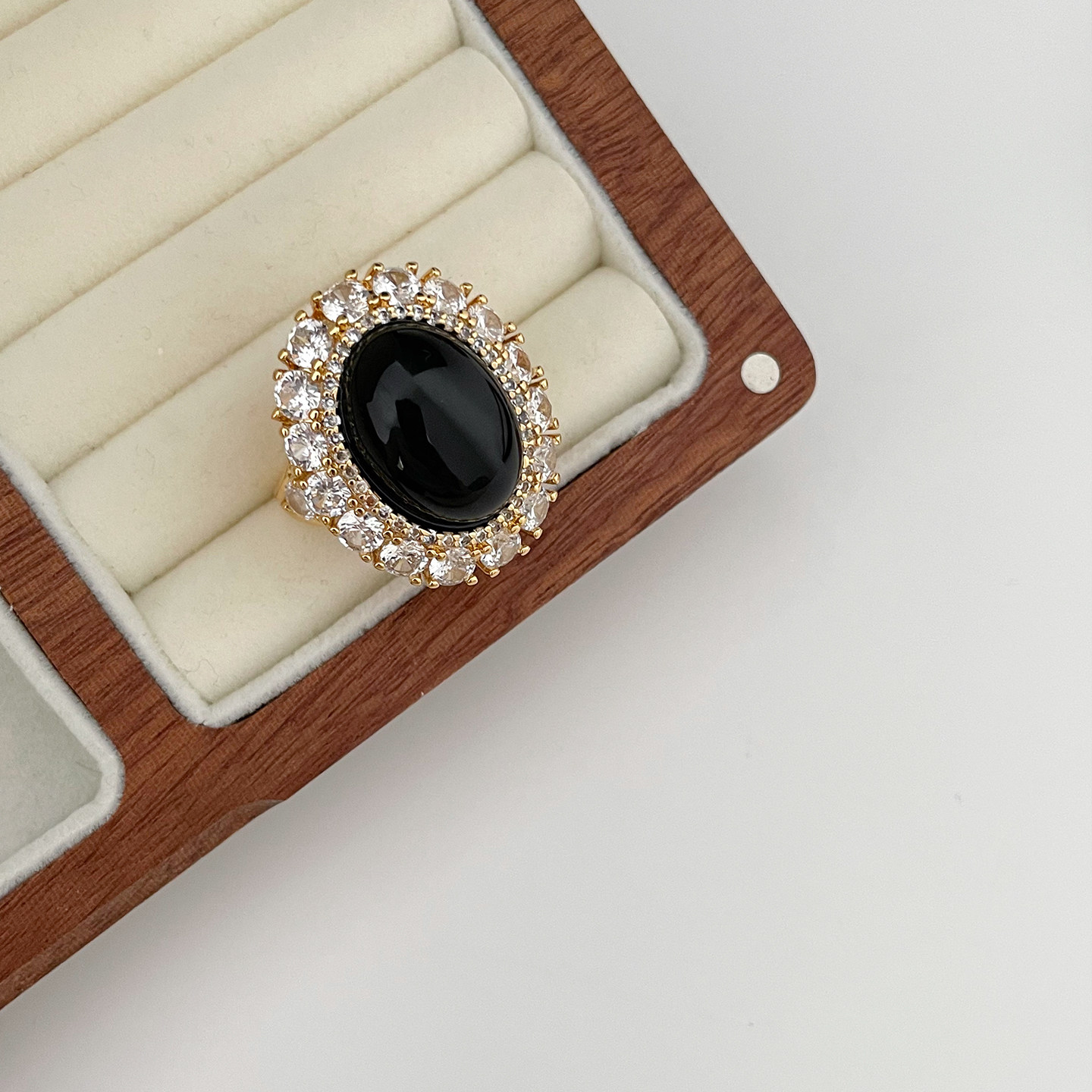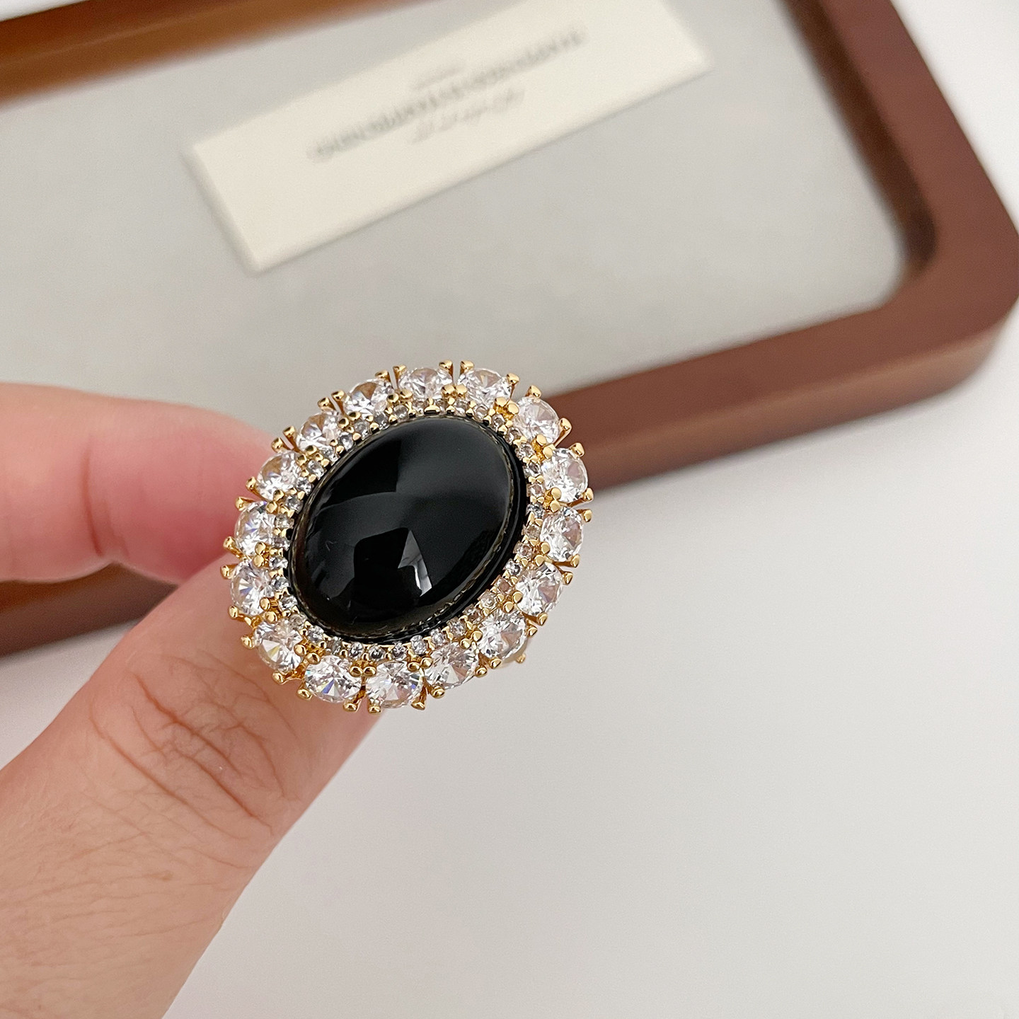 欧美风复古宫廷风黑色椭圆宝石戒指女小众设计高级感时尚个性指环