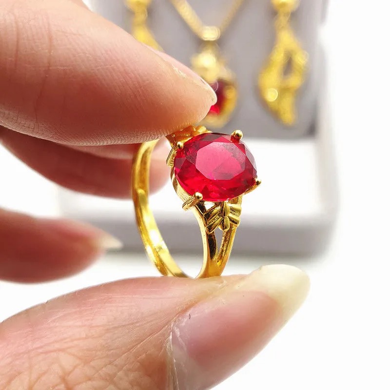 红宝石镀金戒指女款沙金镶钻戒指环饰品开口可调节首饰久不掉色